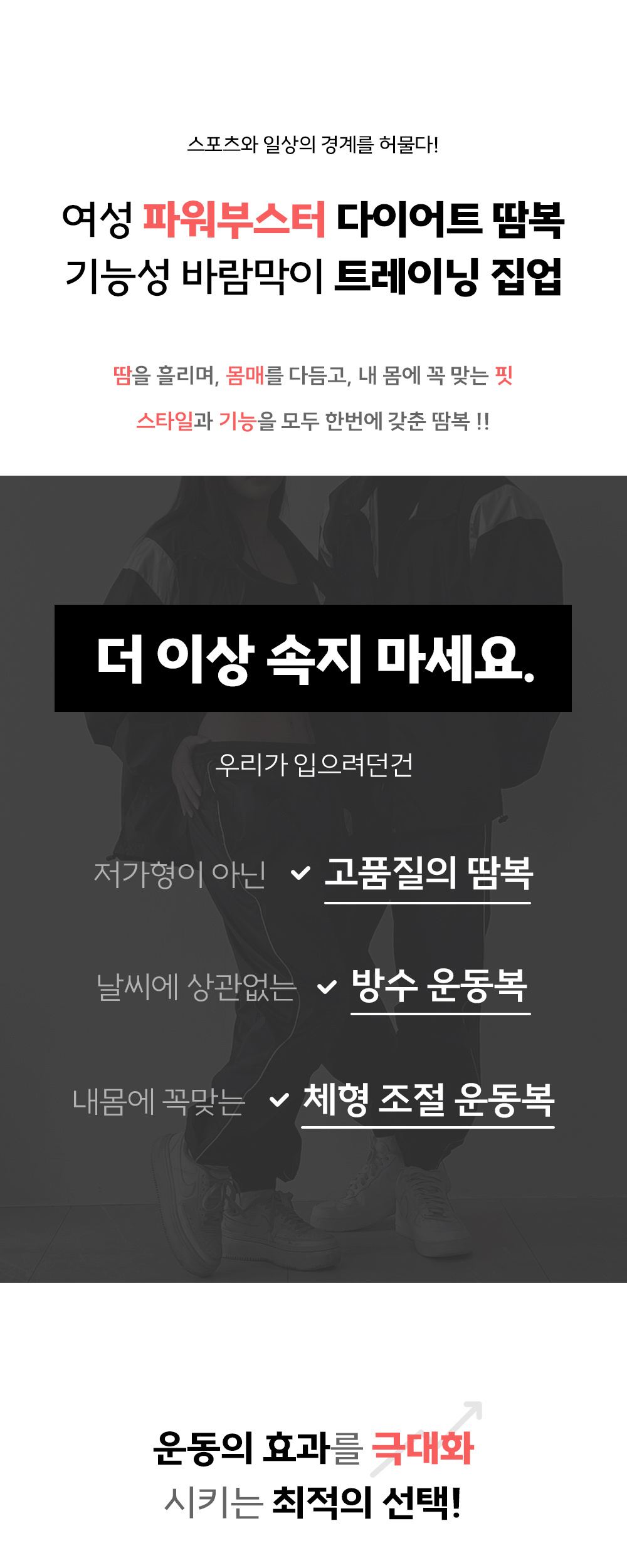여성 파워부스터 땀복 런닝 다이어트 기능성 바람막이 트레이닝 집업