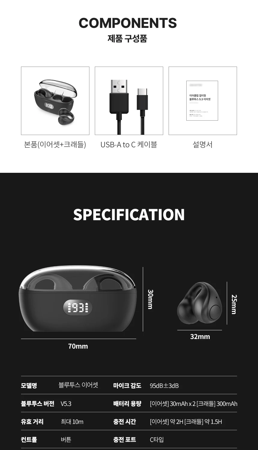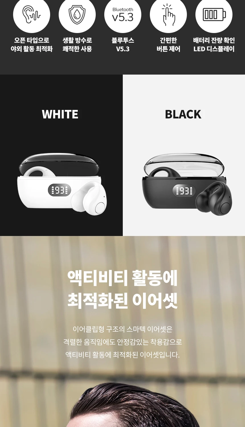 “오픈형 귀걸이형 블루투스 이어폰, 블루투스 5.3 고음질,생활 방수 스포츠 이어폰,배터리 표시”의 첫 상품평을 남겨주세요 응답 취소
