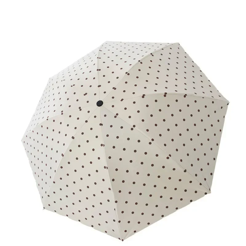 완전 자동 접이식 폴카 도트 우산 UV 태양 보호 태양 우산 파라솔 비닐 단순 비 이중 목적 우산