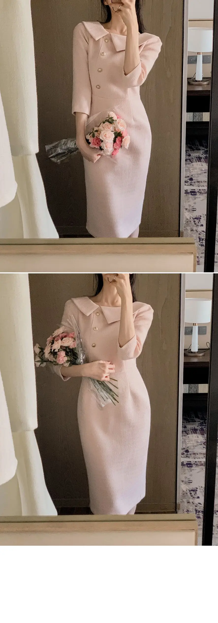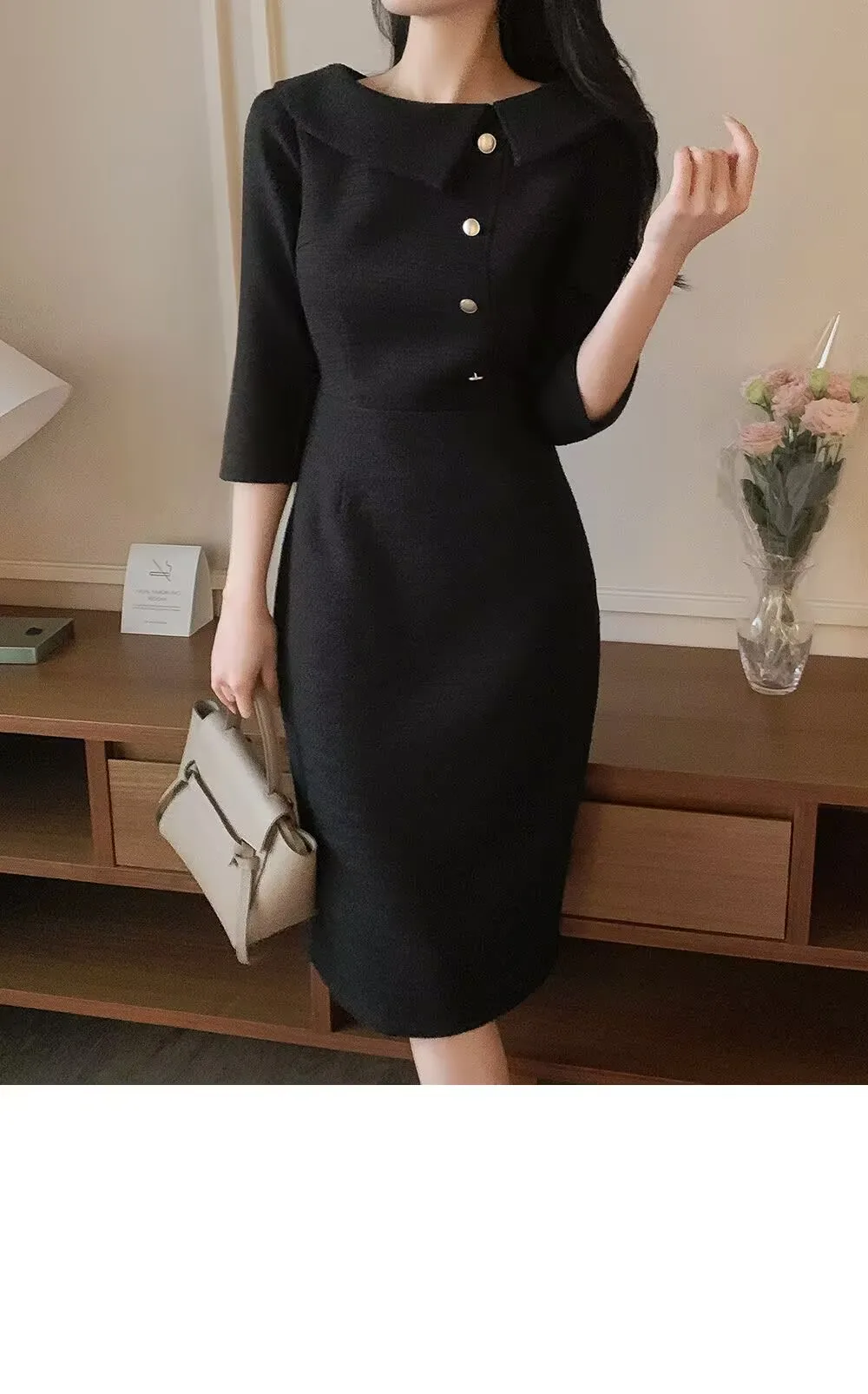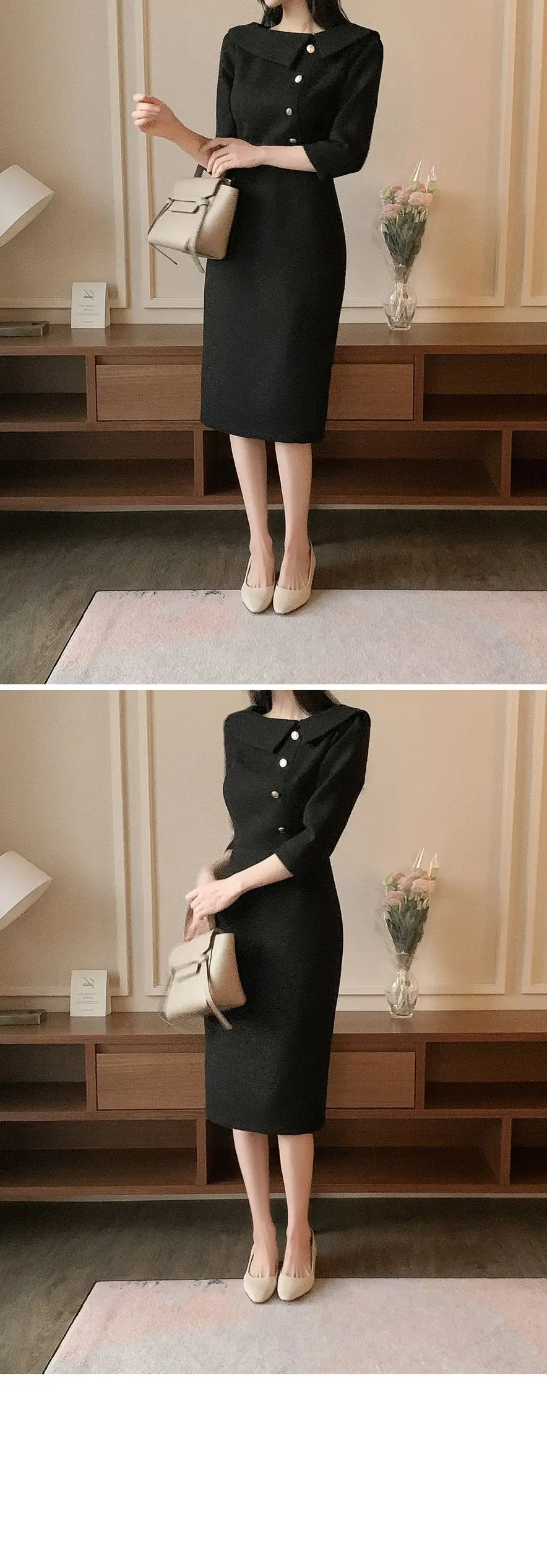 “우아한 중간 길이 민소매 여성 드레스 한국 스타일 통근 하이 웨이스트 슬리밍 봄 패션 아이템 싱글 피스”의 첫 상품평을 남겨주세요 응답 취소