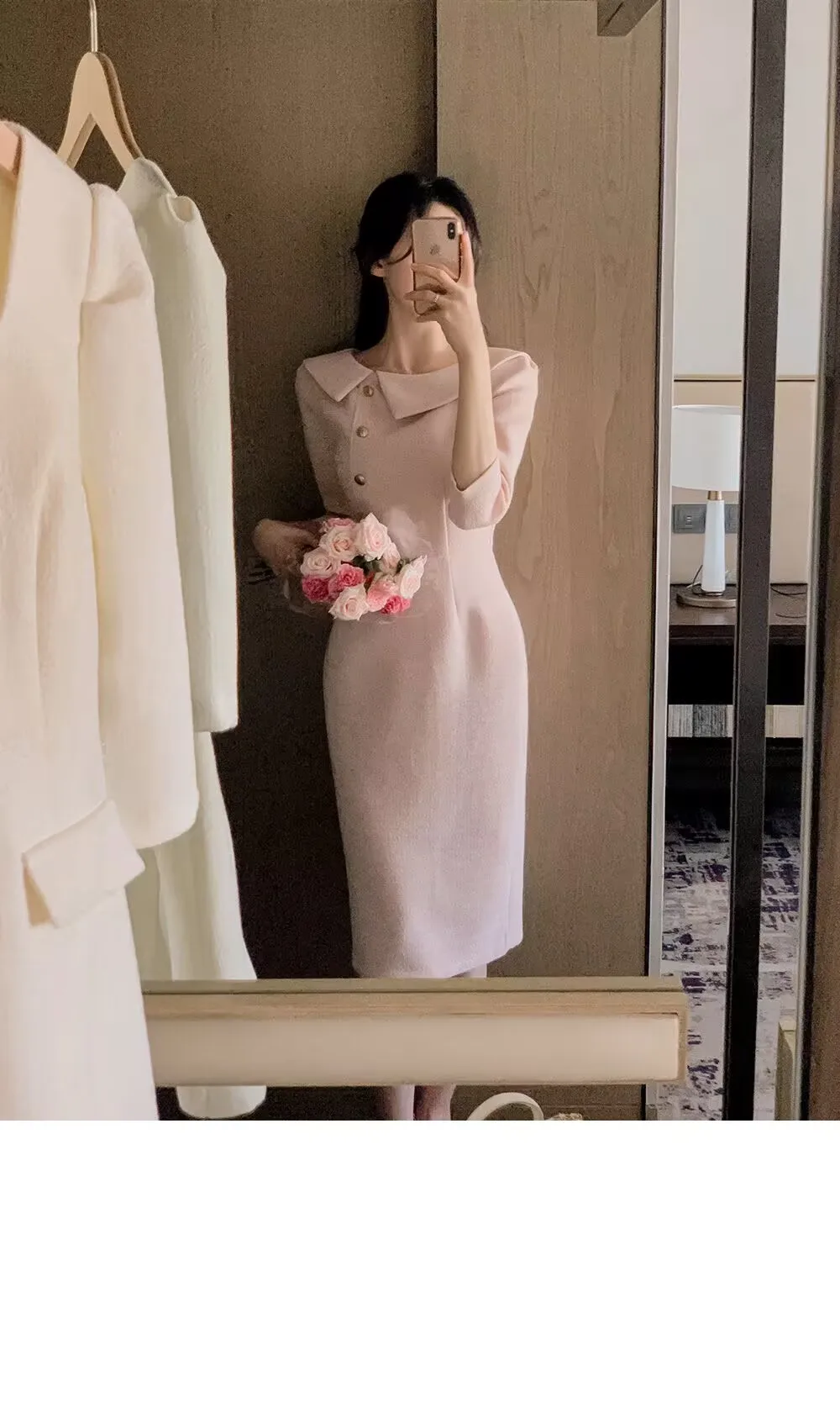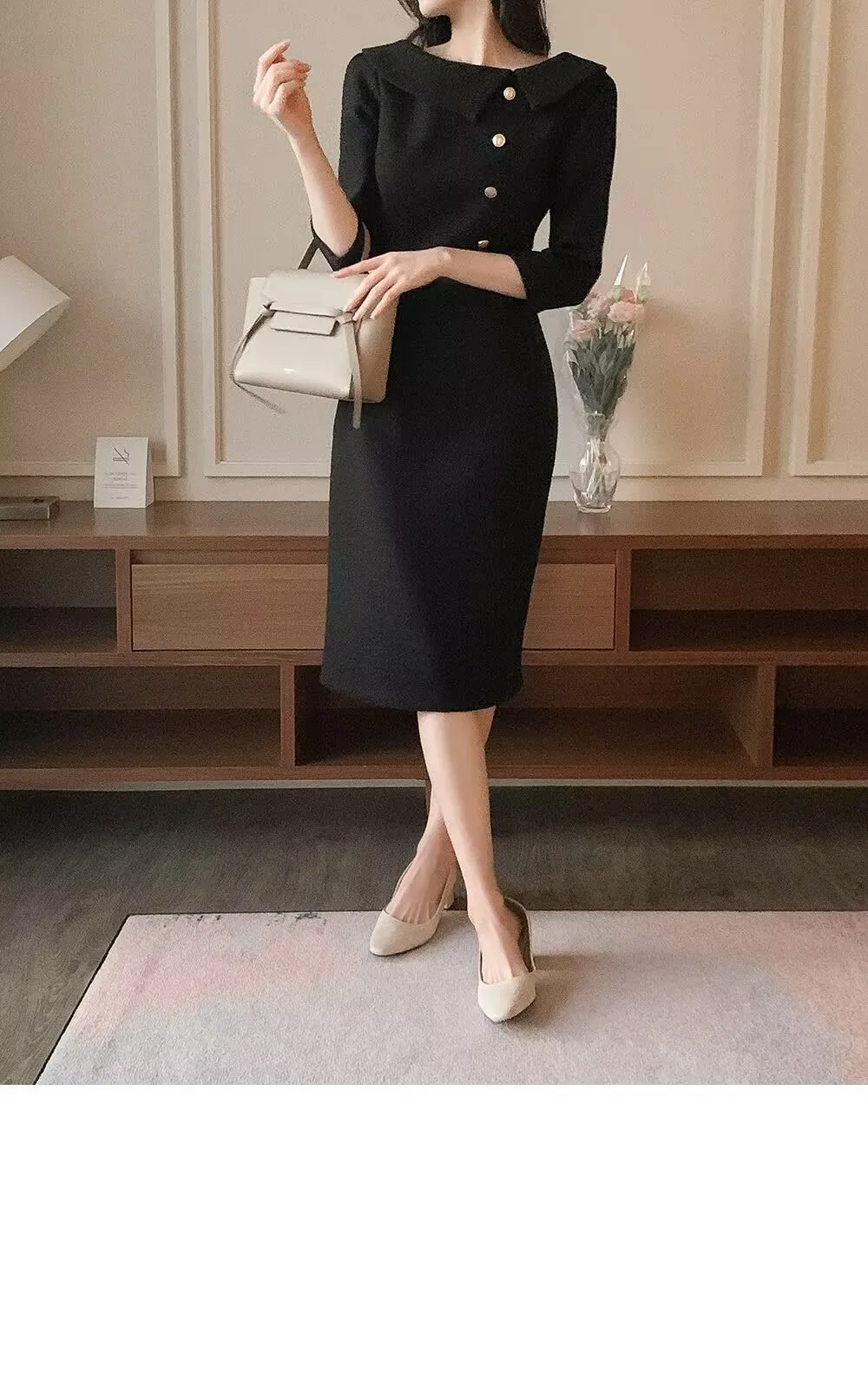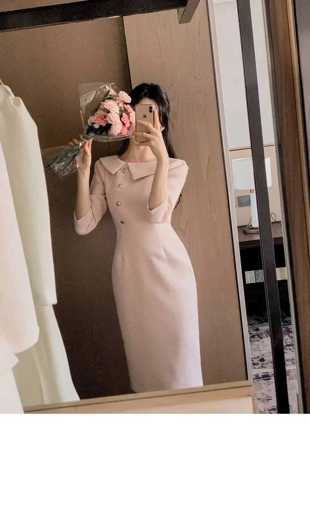 “우아한 중간 길이 민소매 여성 드레스 한국 스타일 통근 하이 웨이스트 슬리밍 봄 패션 아이템 싱글 피스”의 첫 상품평을 남겨주세요 응답 취소