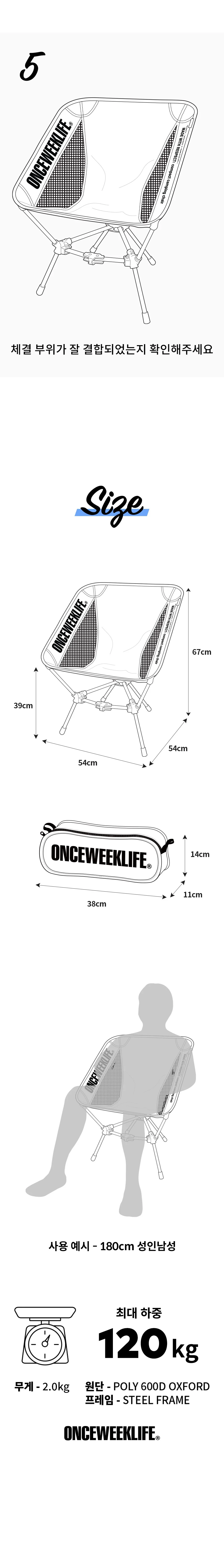 (원스위크라이프) 휴대용 백패킹 경량 체어 미니 캠핑 의자 OCH0268