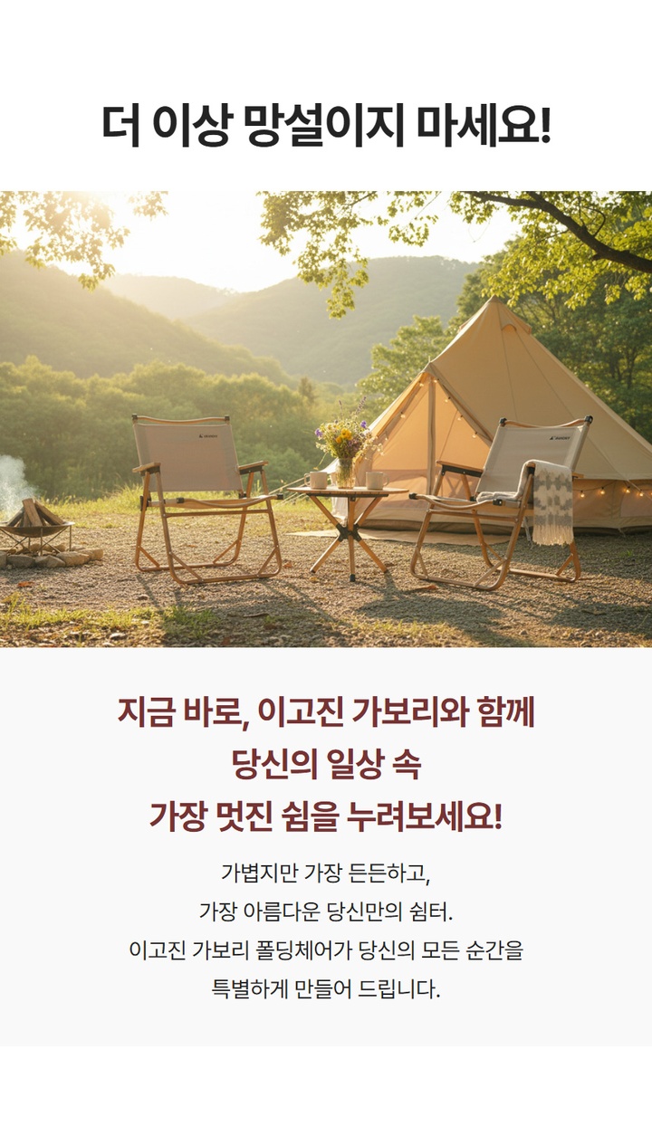 이고진 가보리 캠핑 의자 경량 접의식 폴딩 로우 체어 감성 낚시