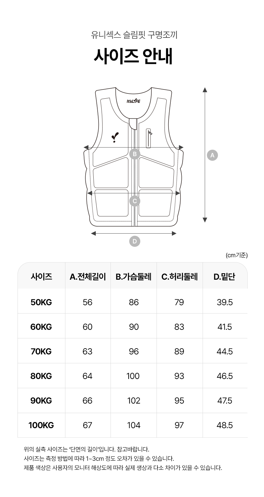 이츠라이프 유니섹스 슬림핏 구명조끼 부력 보조복 남녀공용