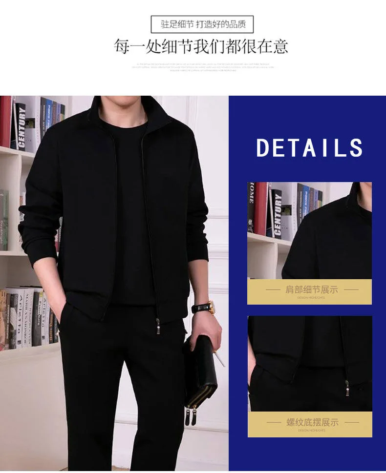 중년 및 노년 남성 투피스 캐주얼웨어 및 운동복 세트, 긴팔 세트, 공개판 단색 가디건