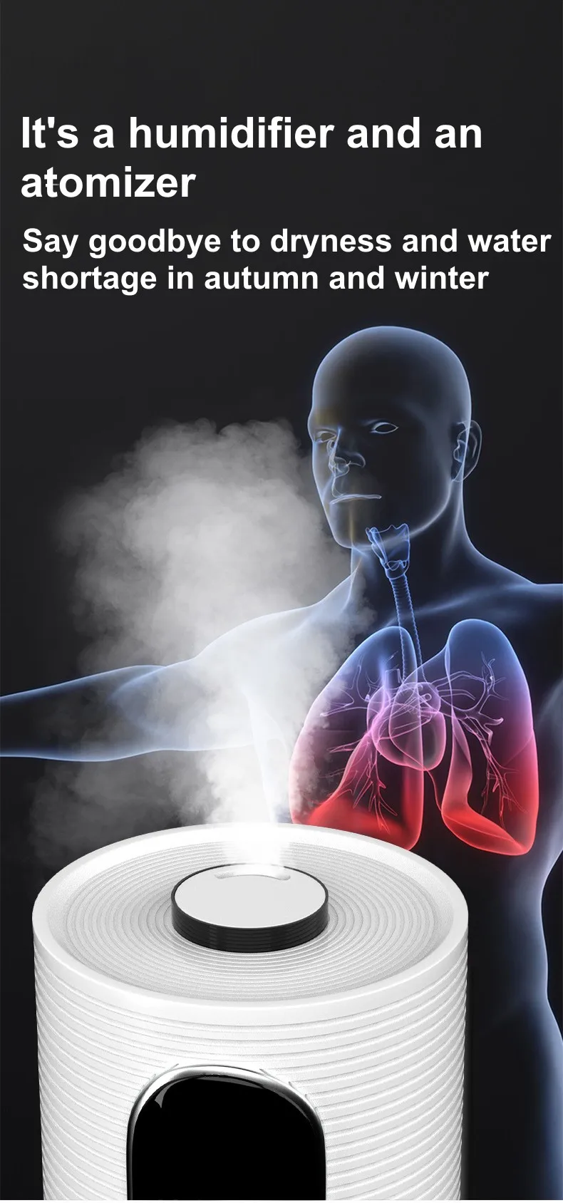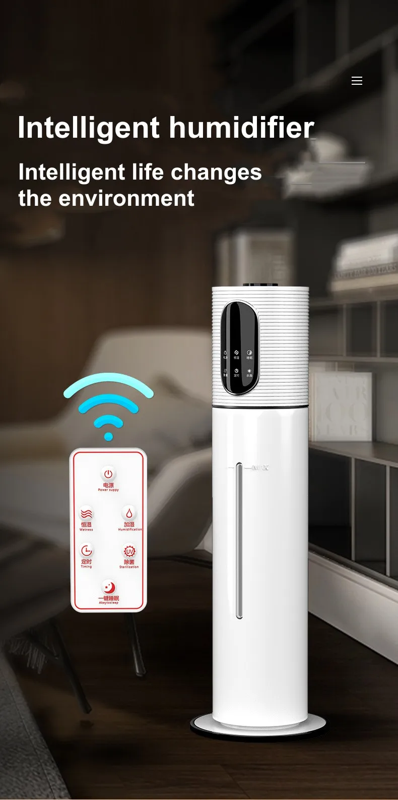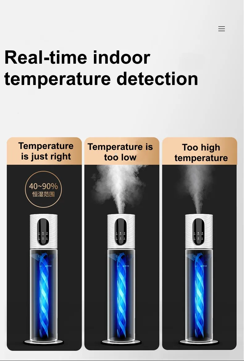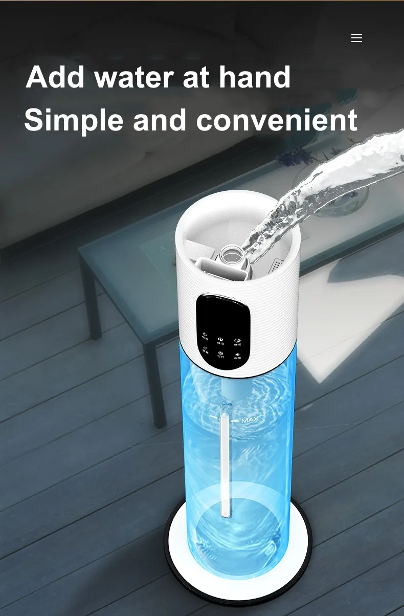 대용량 디자인:8L 물 탱크 용량은 장시간 지속적으로 가습할 수 있어 자주 물을 추가하는 문제를 줄일 수 있으며, 특히 거실 및 사무실과 같은 넓은 공간에 적합합니다.