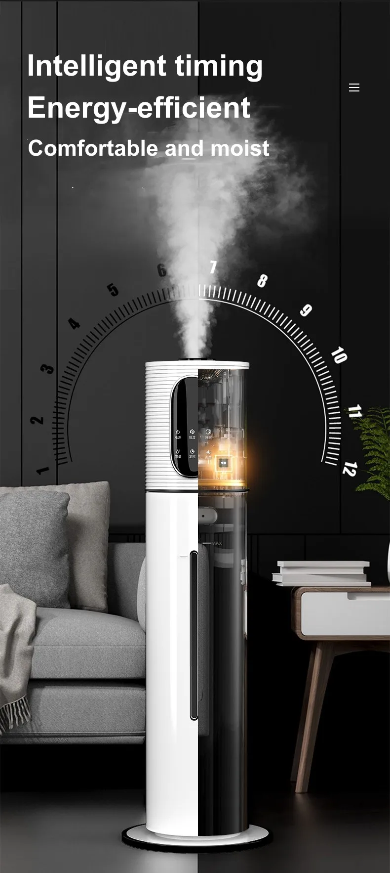 12L 지능형 스탠딩 가습기 침실 거실 사무실 겸용 알레르기 환자용 겨울철 건조한 피부 구원자