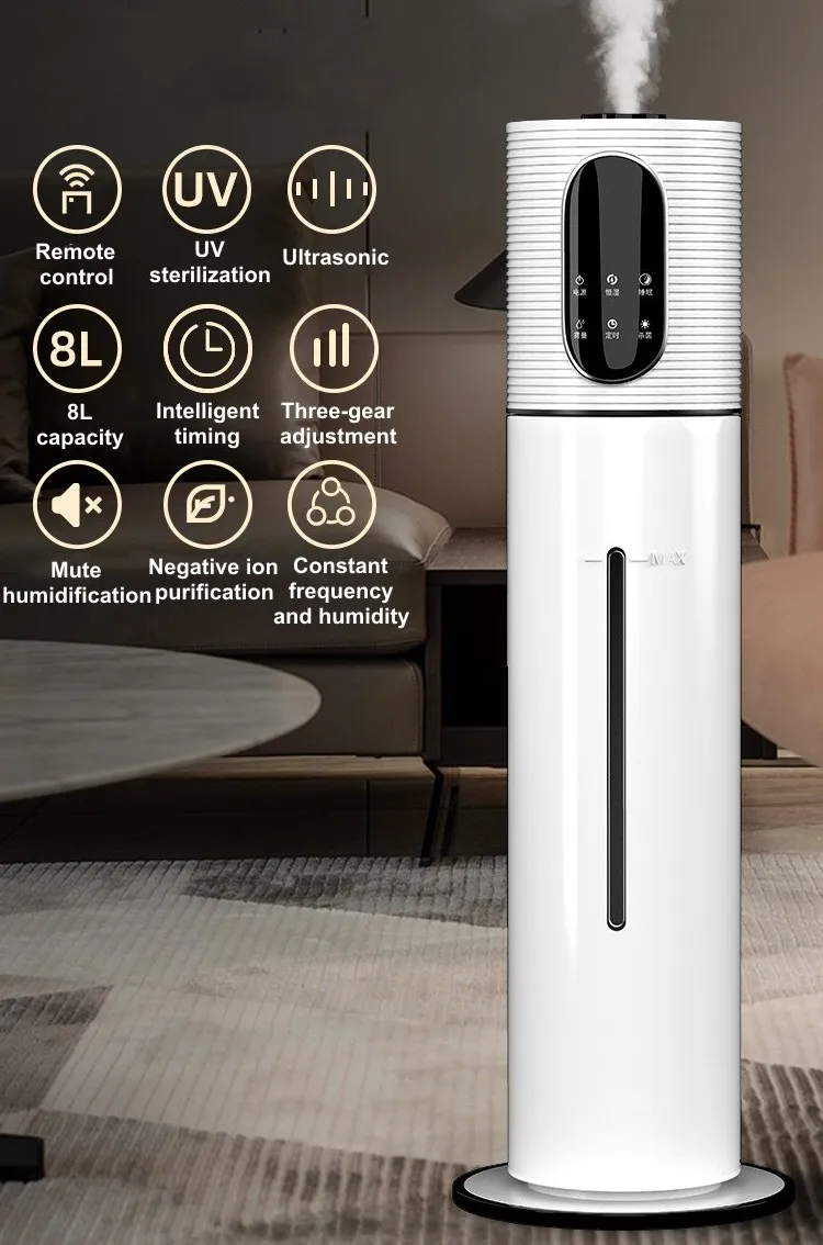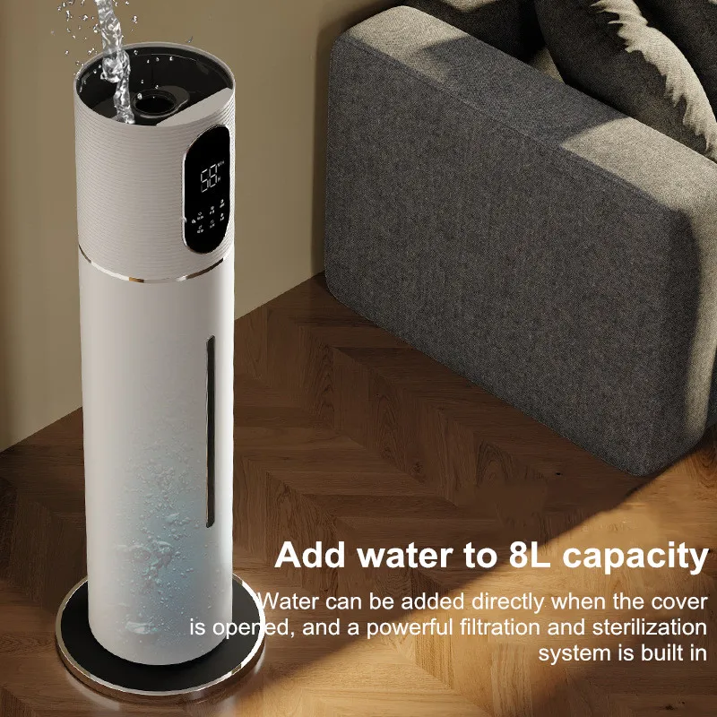 지능형 대용량 바닥 장착 가정용 가습기, 무소음 공기 살균 정화, 짙은 안개 전력, 8L