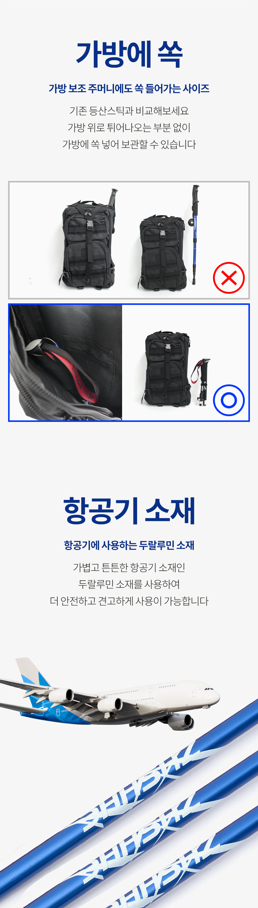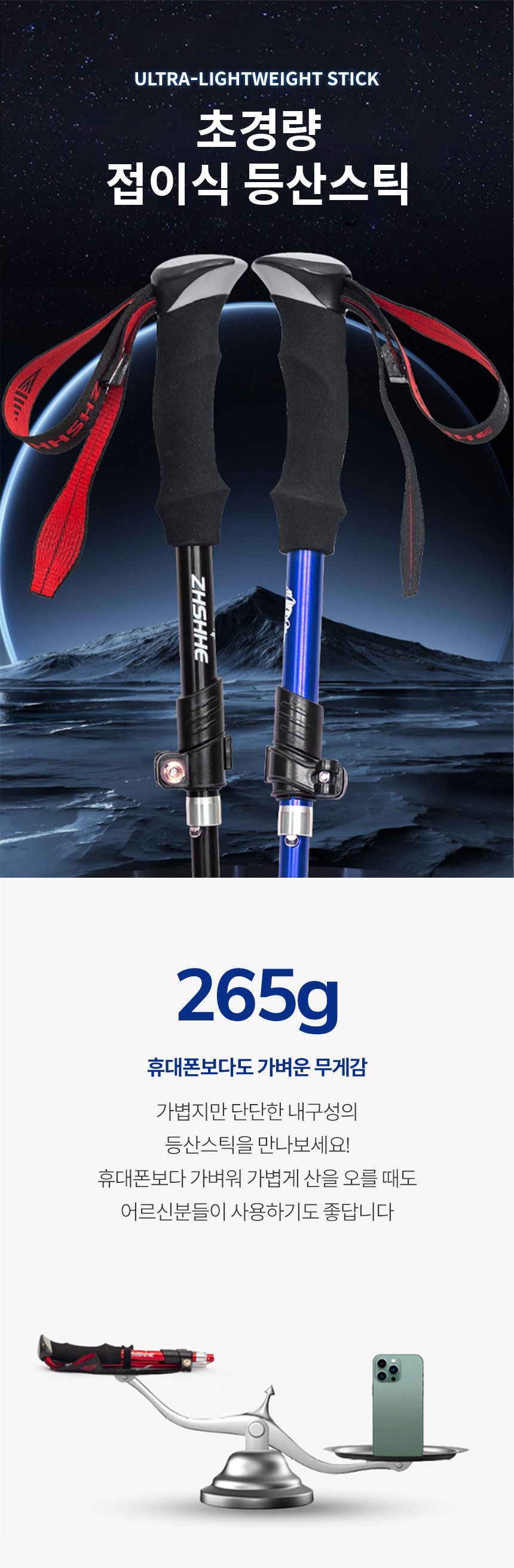 초경량 두랄루민 숏 롱 이중고정 튼튼한 하이킹 1+1 접이식 등산스틱