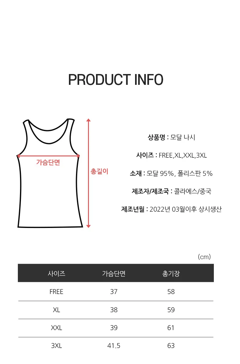 - 품목 유형: 캐미솔 & 탱크