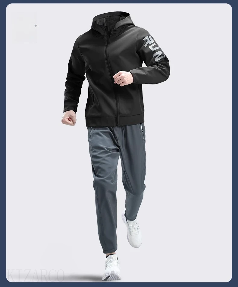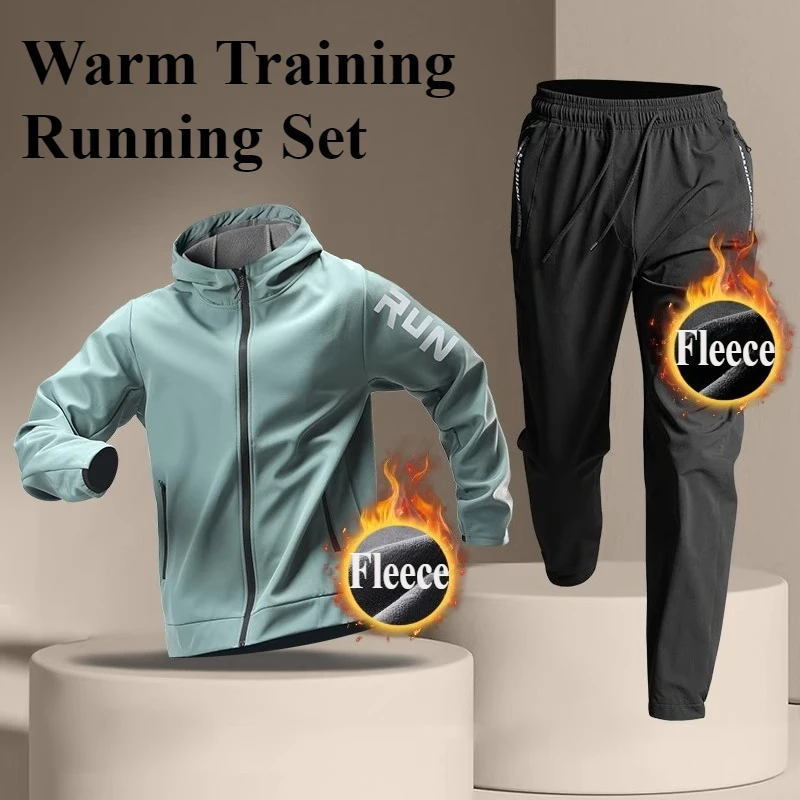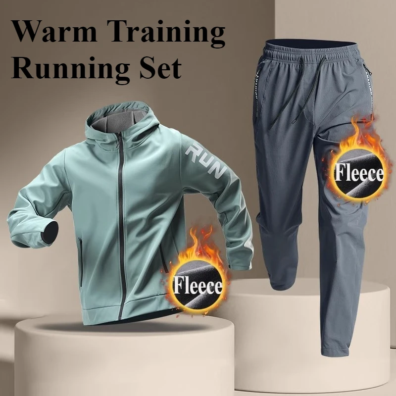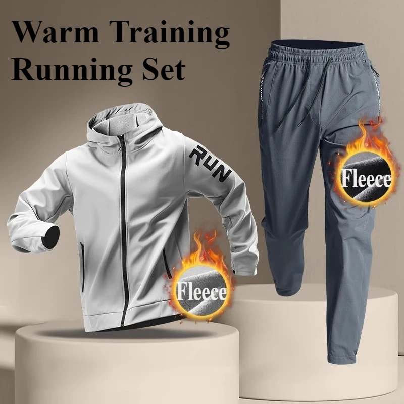 플리스 따뜻한 러닝 스포츠웨어 세트 남성용 가을 및 겨울 피트니스웨어 빠른 건조 옷 트레이닝 아침 달리기 야외 사이클링