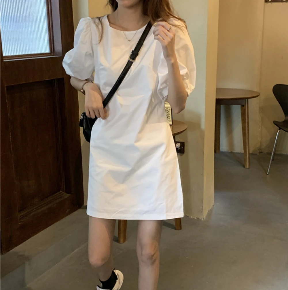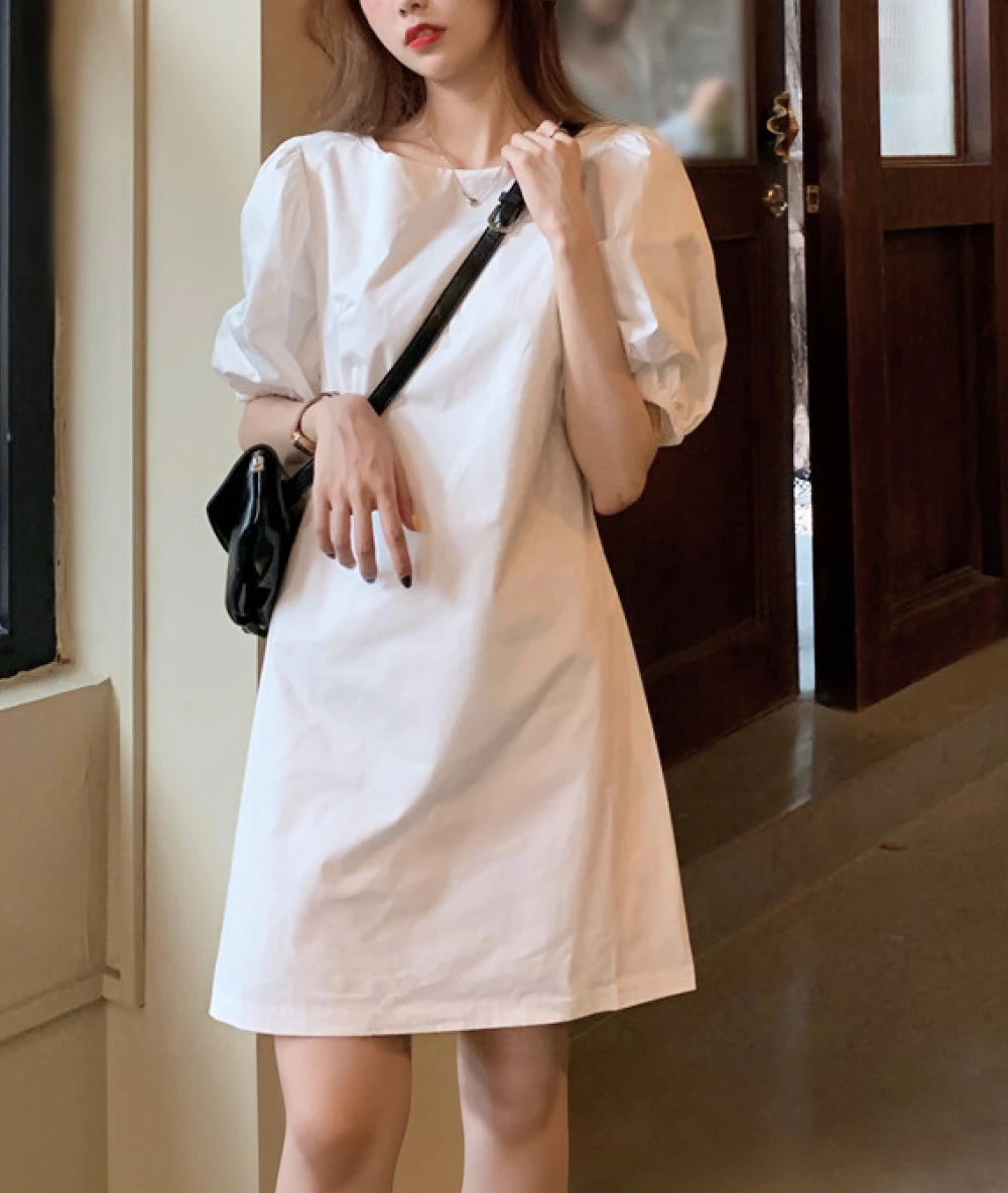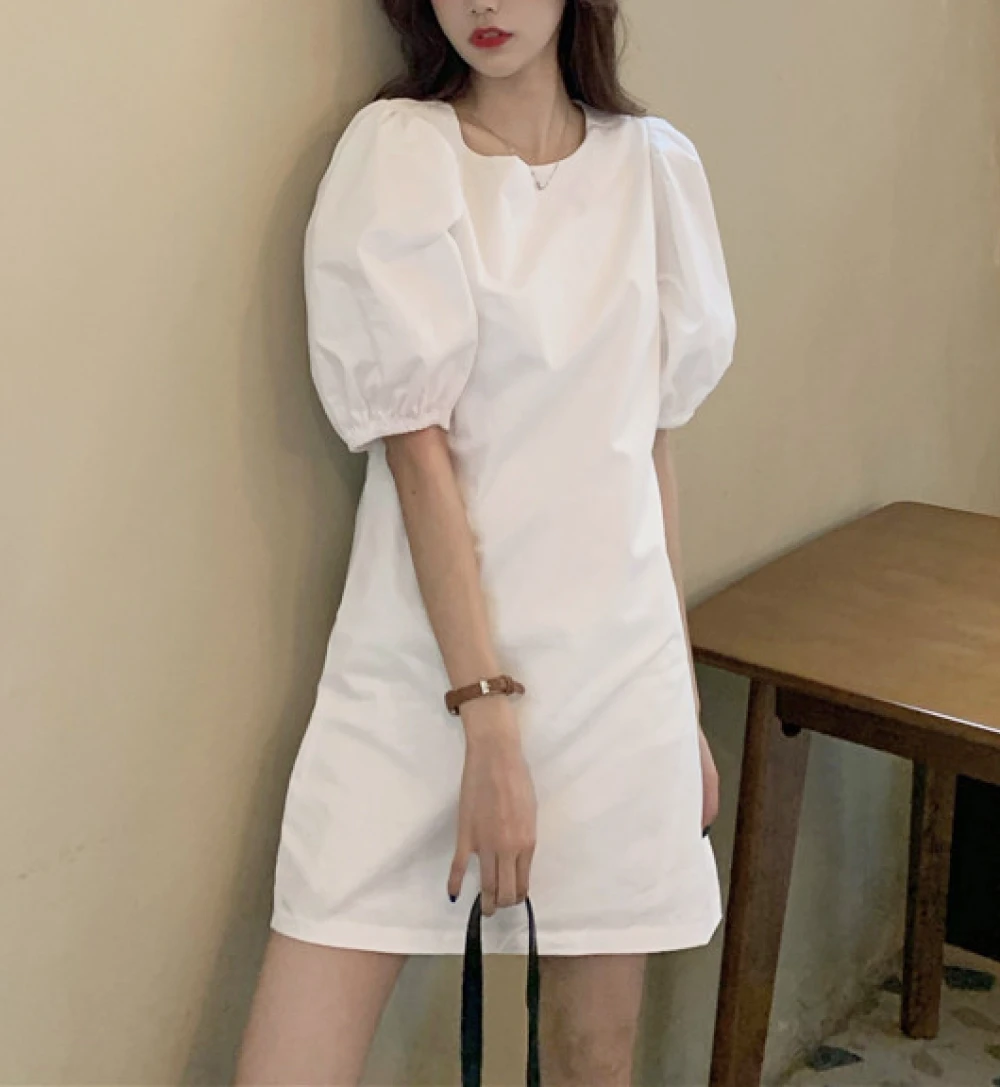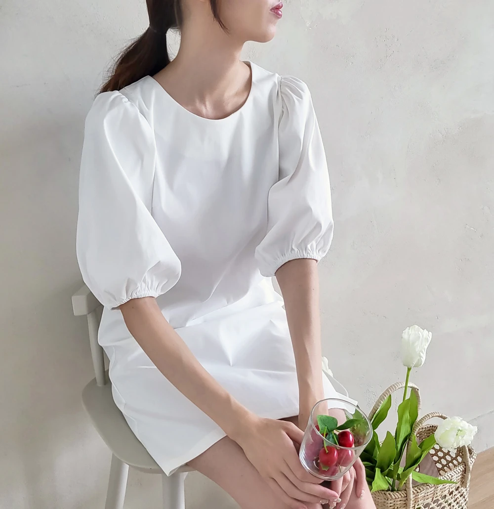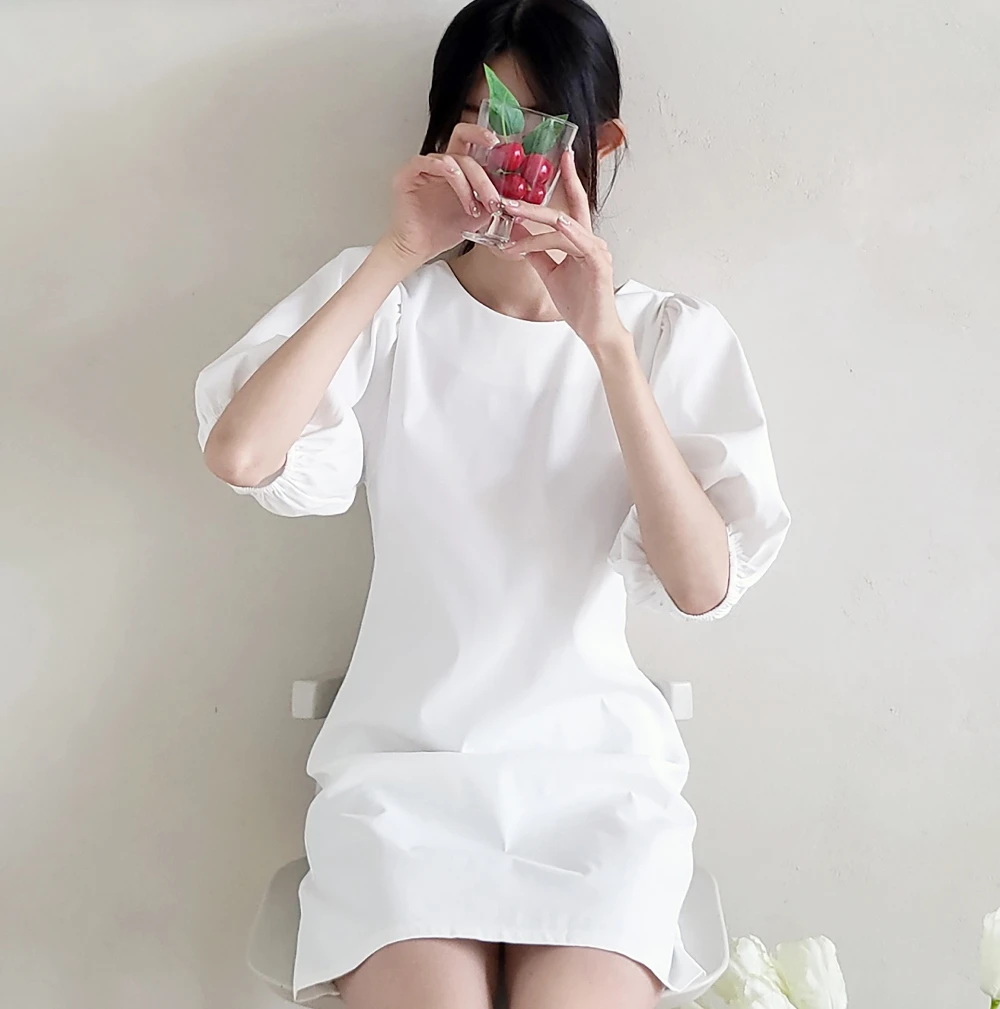 [한국배송/신상] – 여성 봄 여름 사계절 화이트/블랙 심플 미니 a라인원피스 브라이덜샤워/셀프웨딩 드레스/휴양지원피스