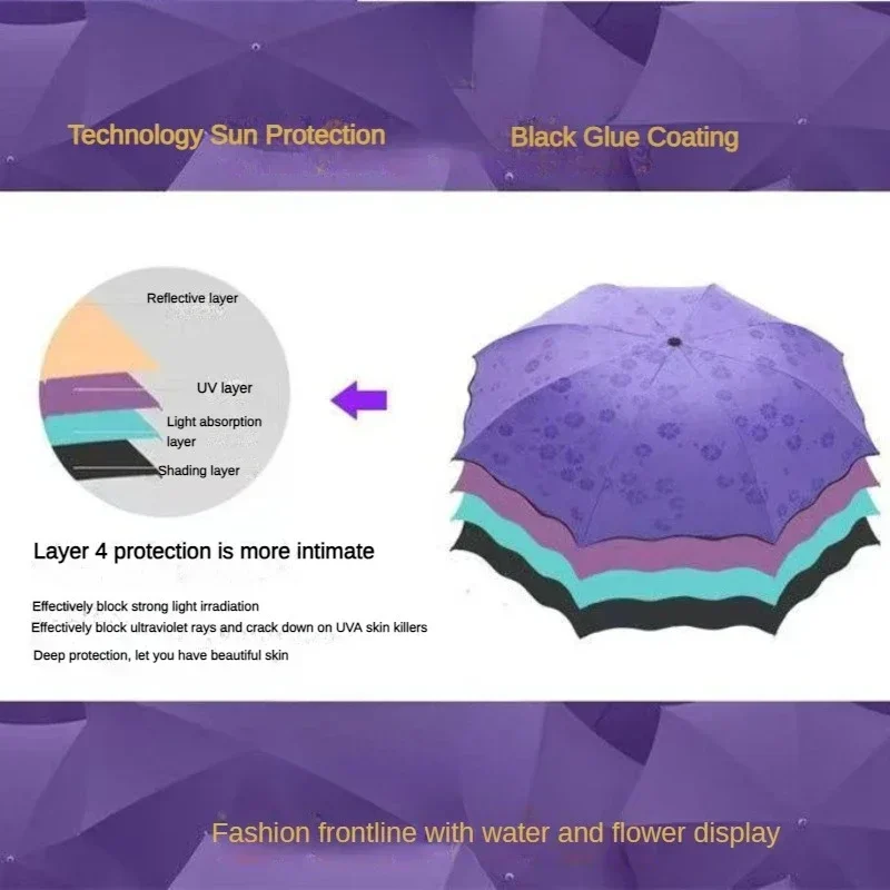 1-2PCS 휴대용 크리 에이 티브 물 꽃 우산 수동 블랙 코팅 UV 보호 태양 비 이중 사용 접는 파라솔