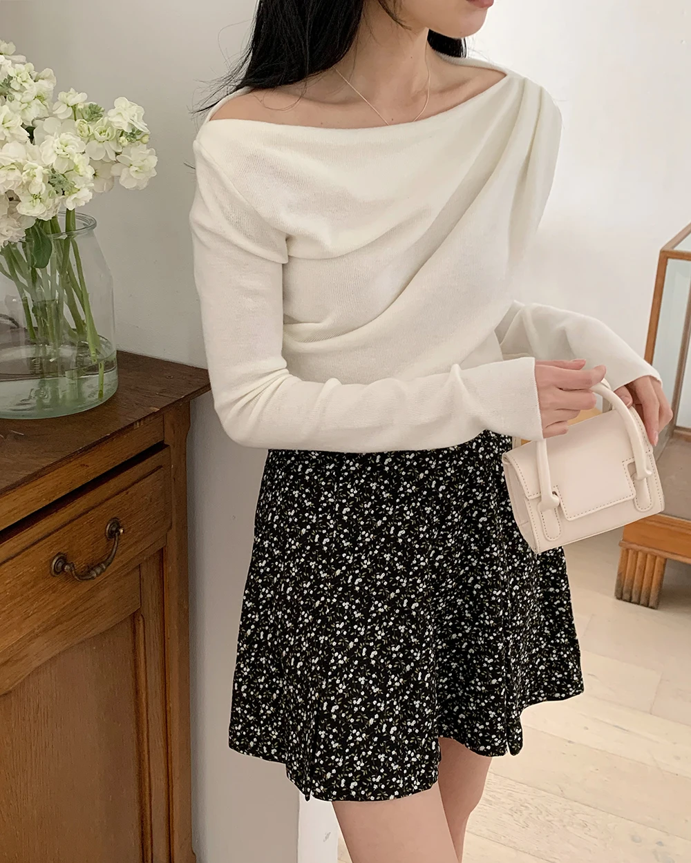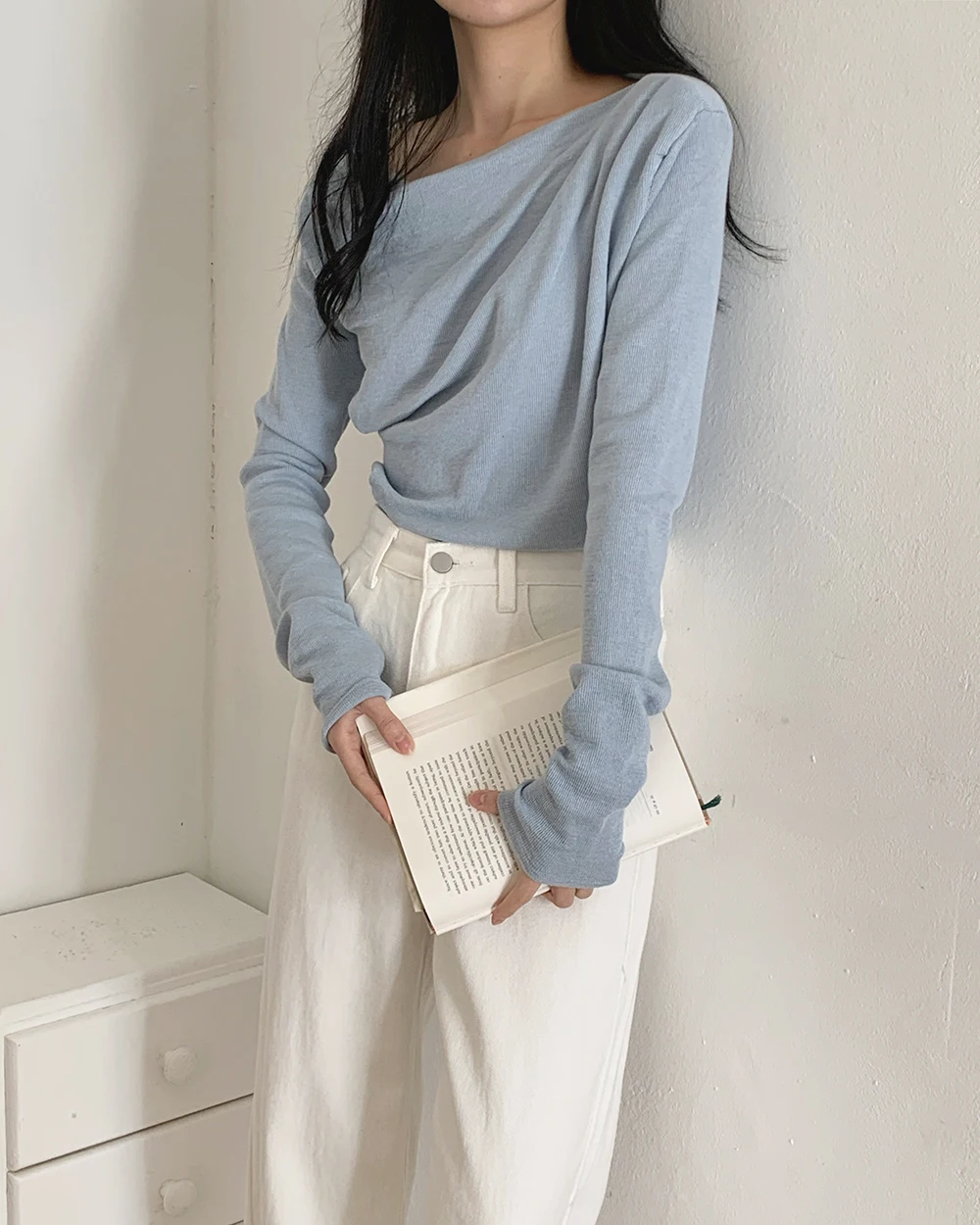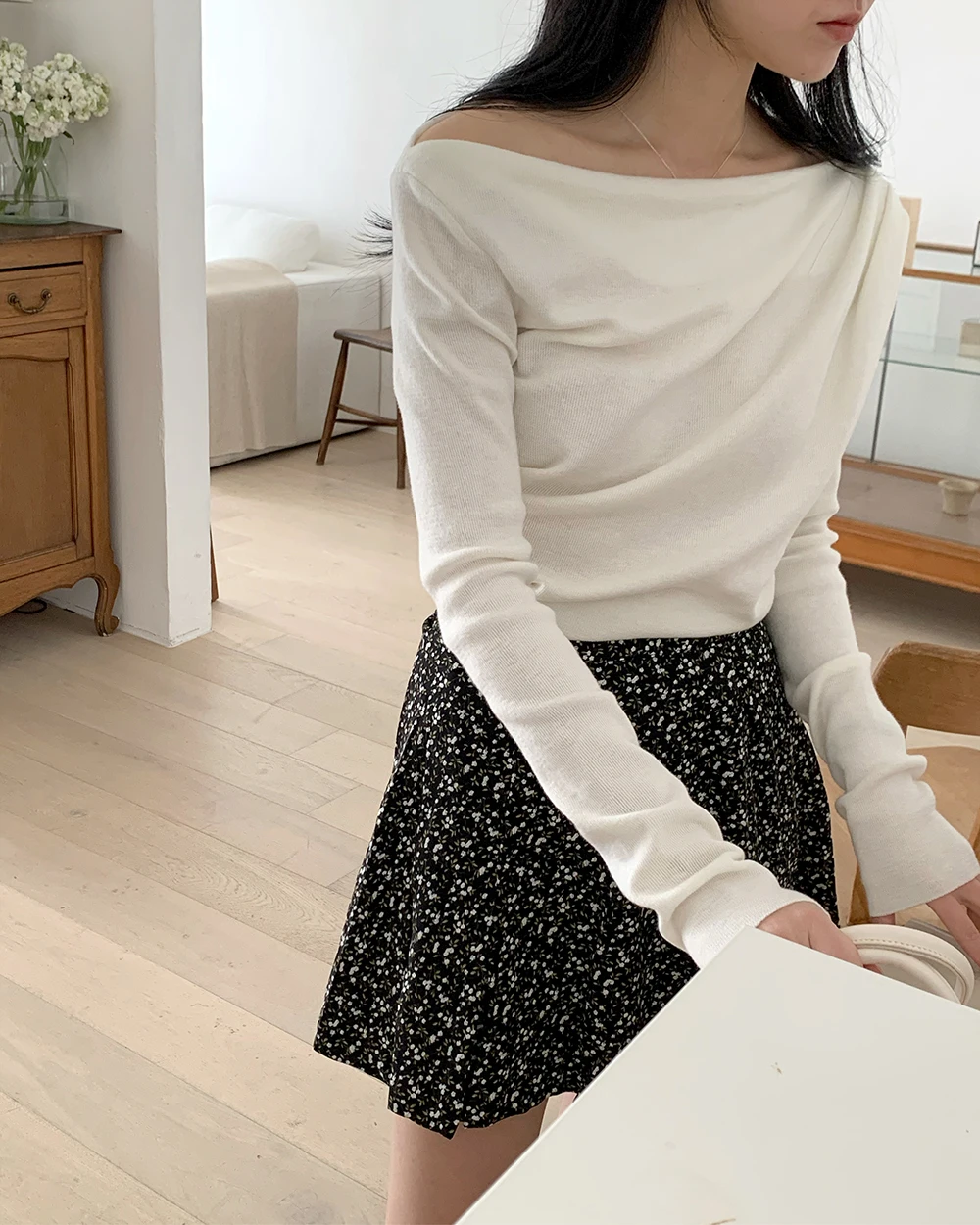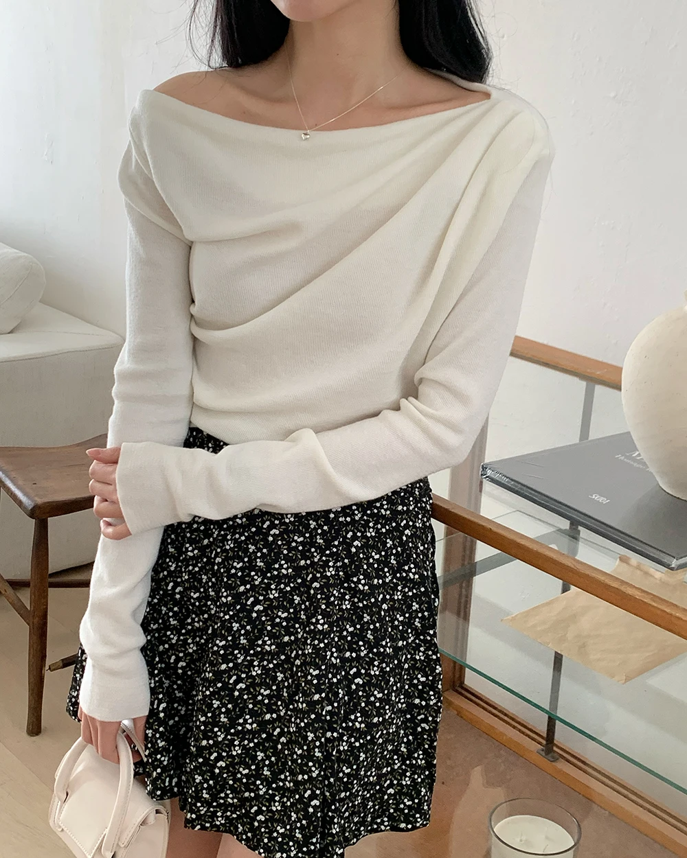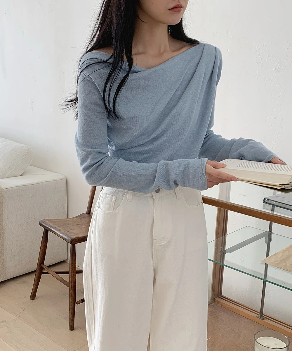 [1015MK]메로아 드레이프 셔링 니트 봄 여성 하객룩 오프숄더