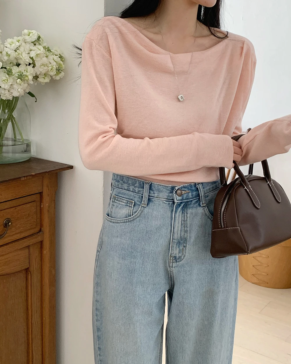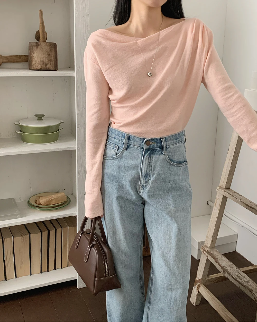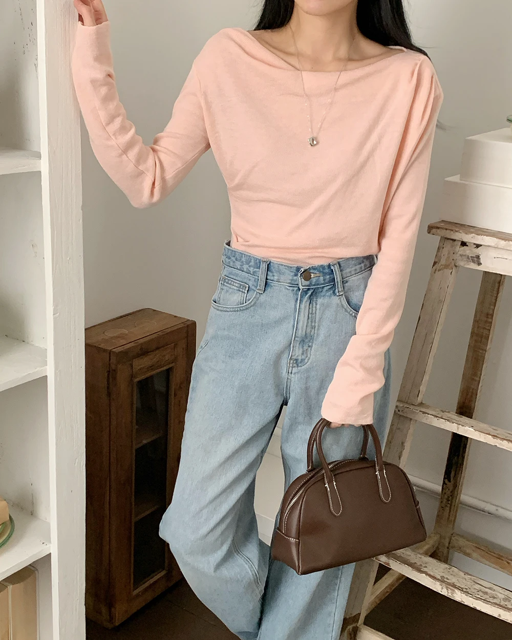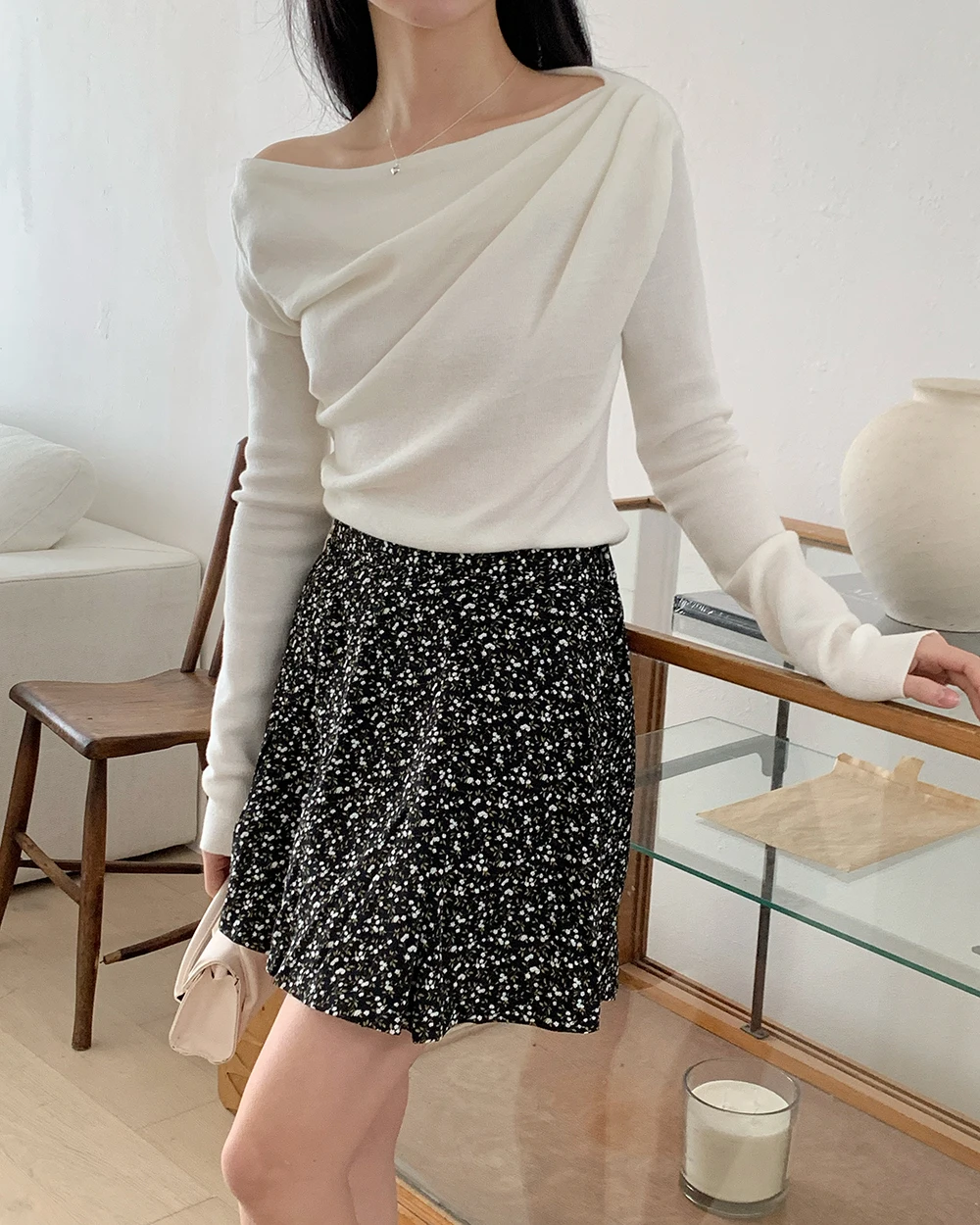 [1015MK]메로아 드레이프 셔링 니트 봄 여성 하객룩 오프숄더