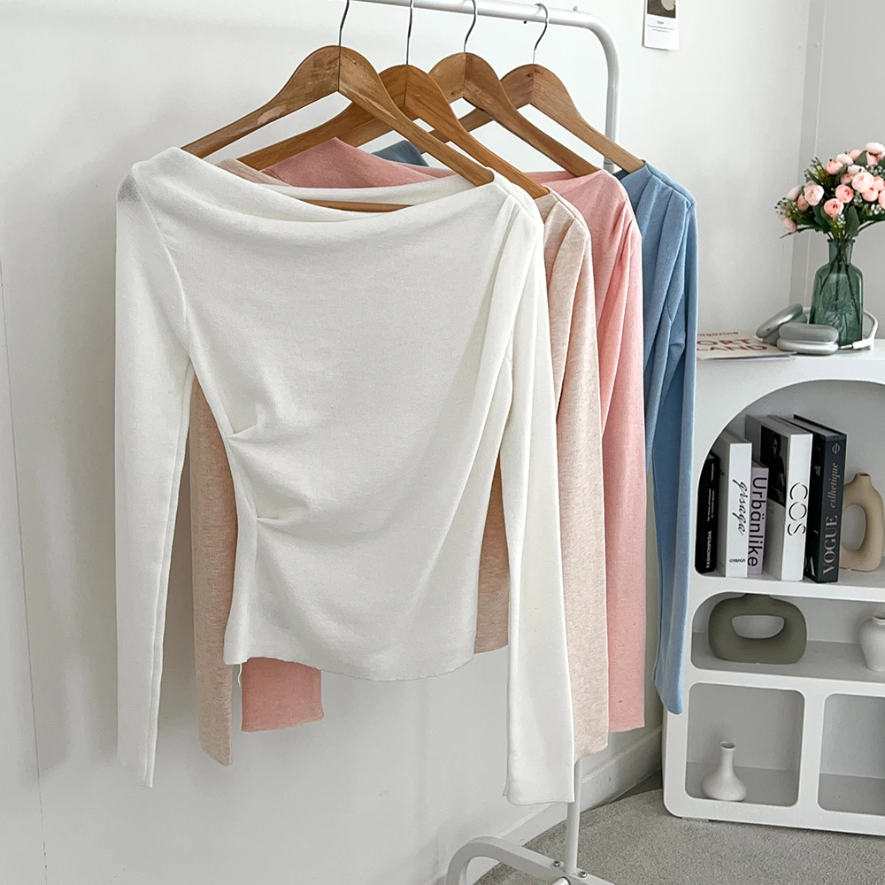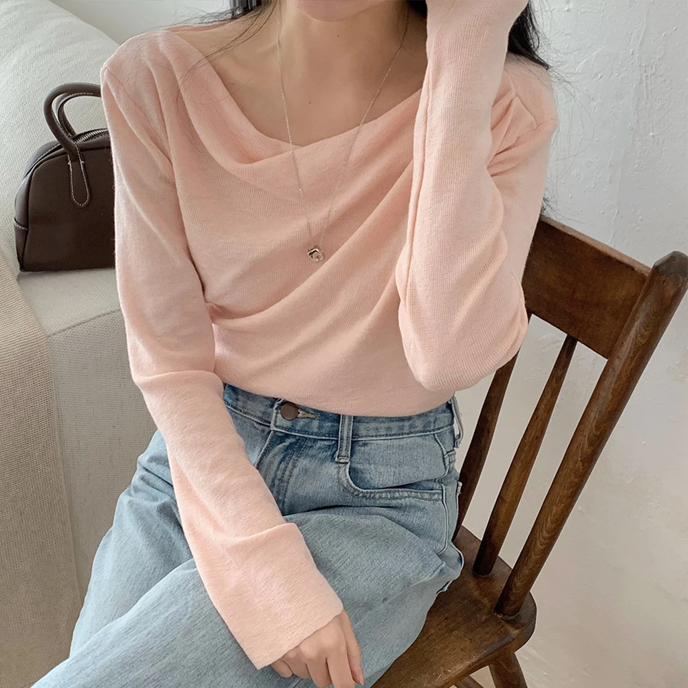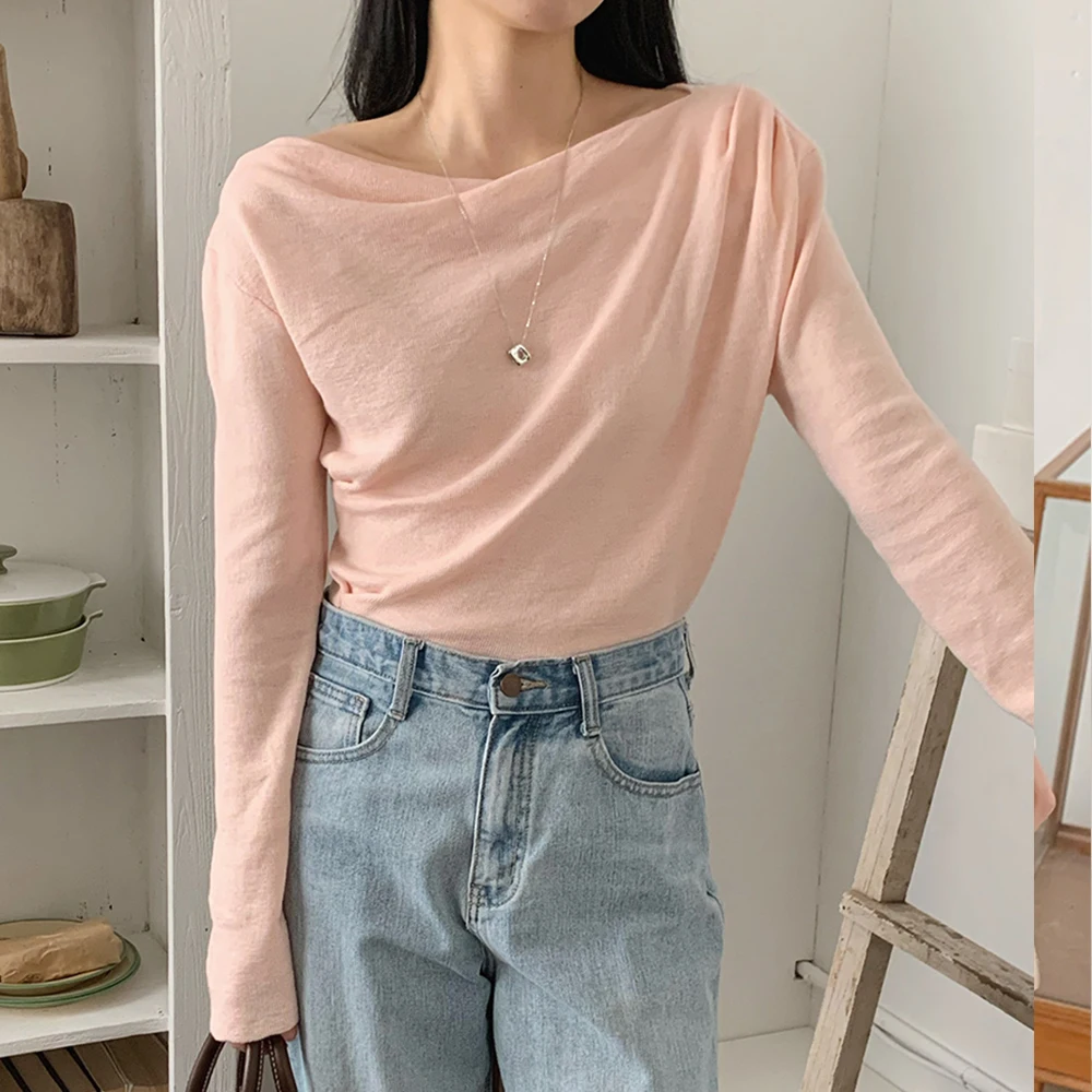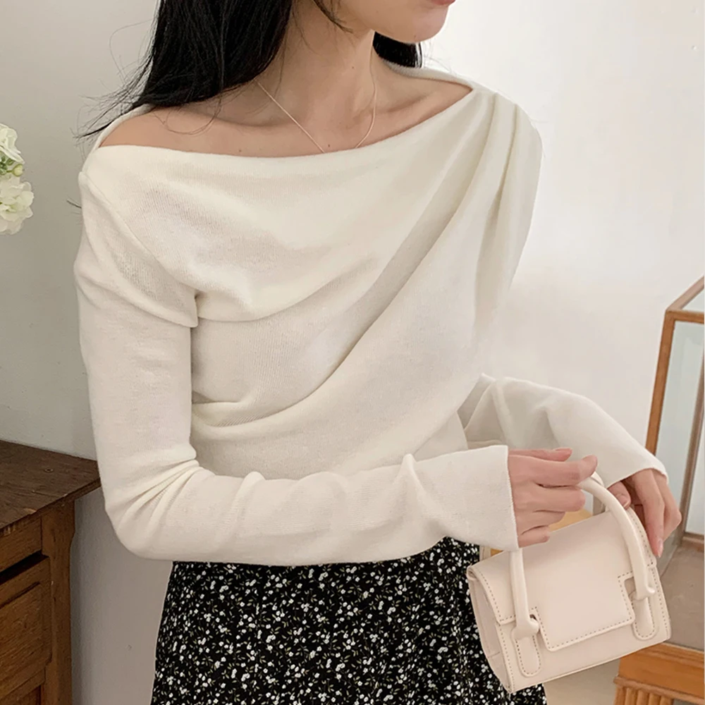 [1015MK]메로아 드레이프 셔링 니트 봄 여성 하객룩 오프숄더