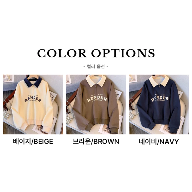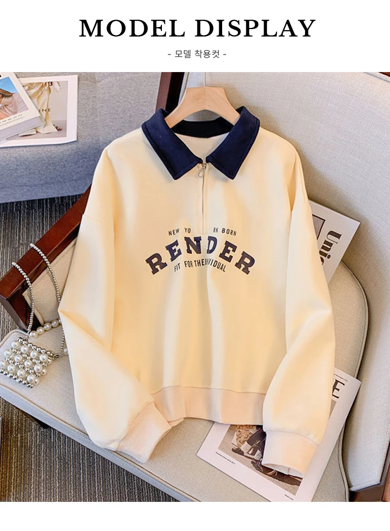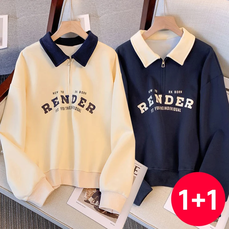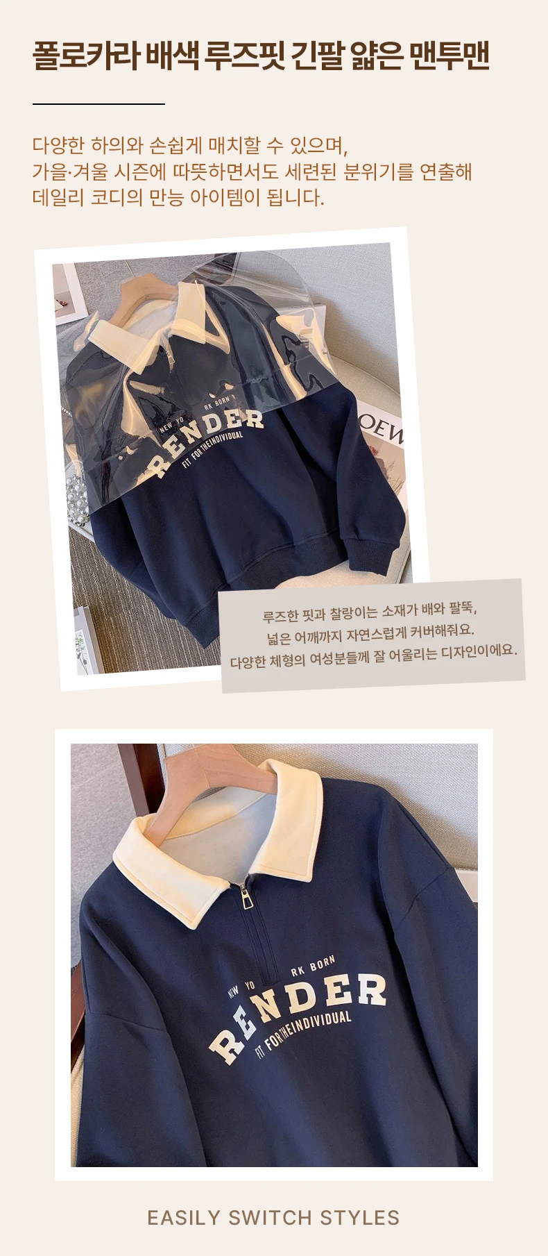 1+1스타일아유 여성용 폴로카라 맨투맨 빅사이즈 데일리 캐주얼 편한 빈티지 스웻셔츠 따뜻한 긴팔 오버핏 트레이닝 상의 TS3861