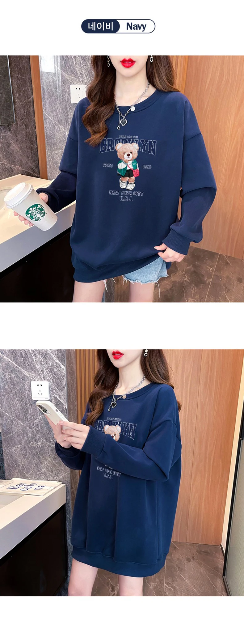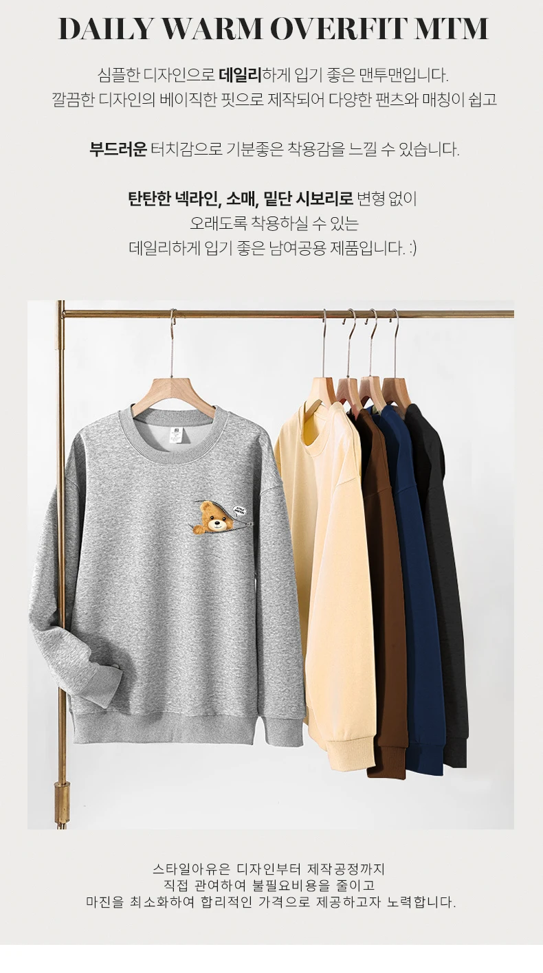 “1+1(2장세트)스타일아유 여성용 유니크 베어프린팅 맨투맨 라운드넥 오버핏 320G면질 빅사이즈 가을겨울용 긴팔 티셔츠 TS3796”의 첫 상품평을 남겨주세요 응답 취소