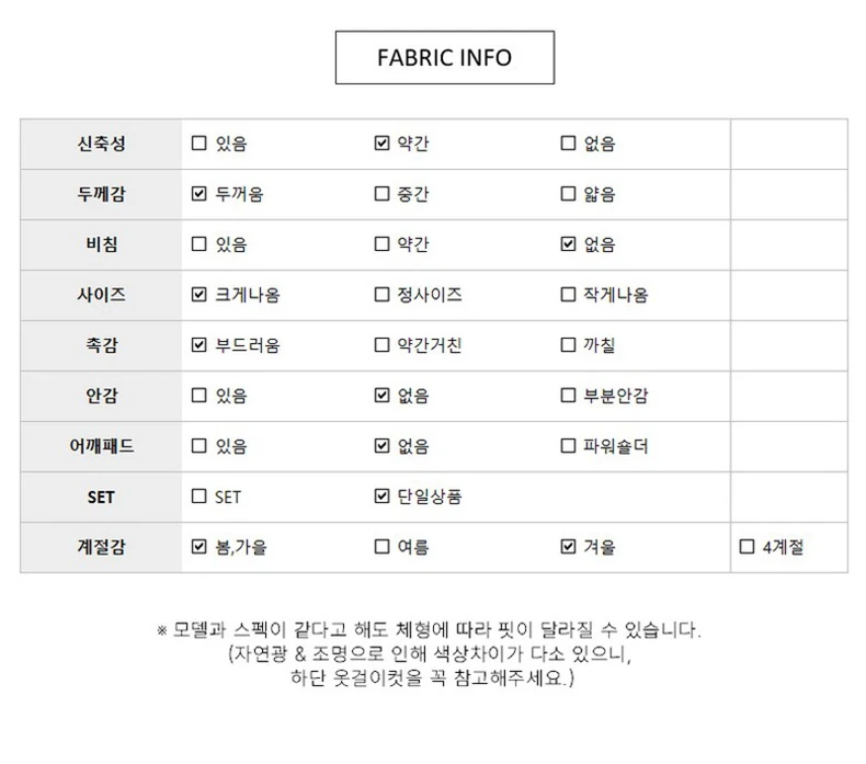 - 의류 길이: 일반