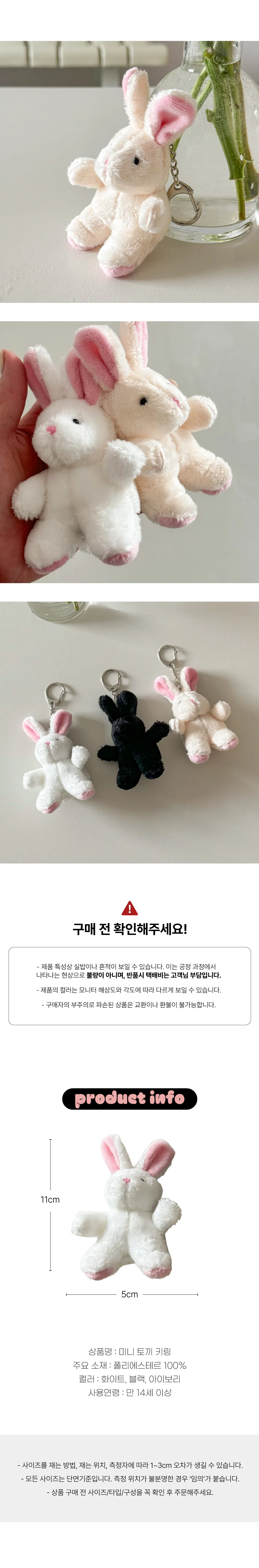 [2시이전 당일출고] 미니 토끼 키링 가방고리 차키홀더 애착 인형 귀여운 동물 봉제인형 열쇠고리 소품