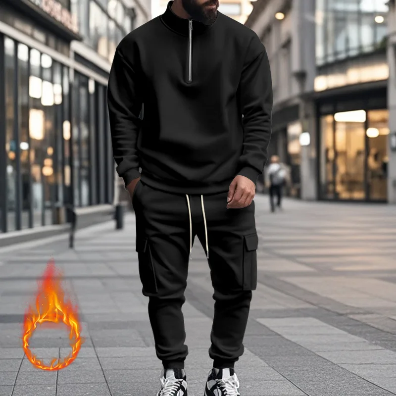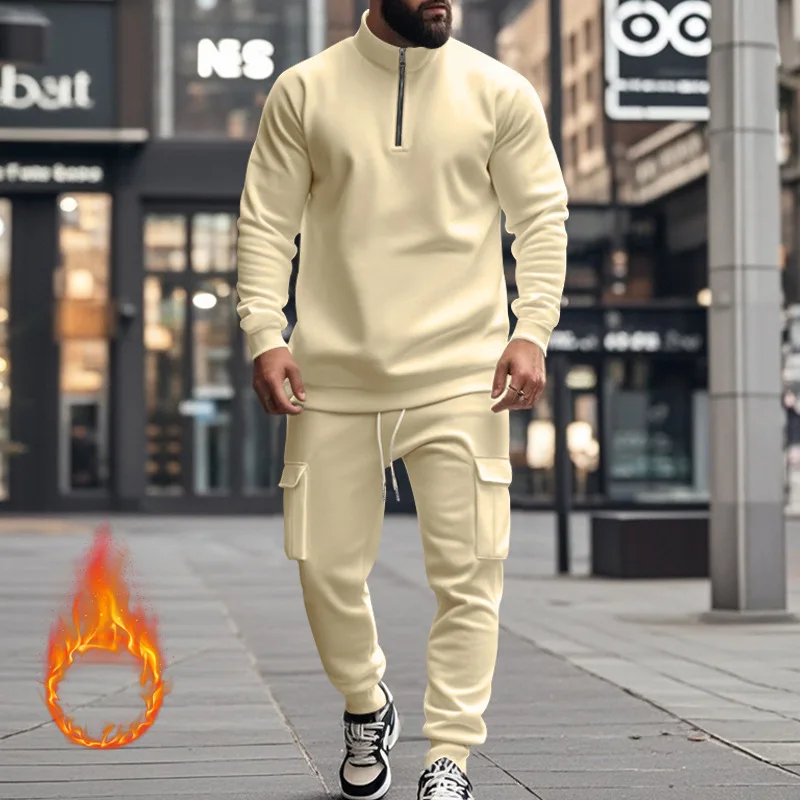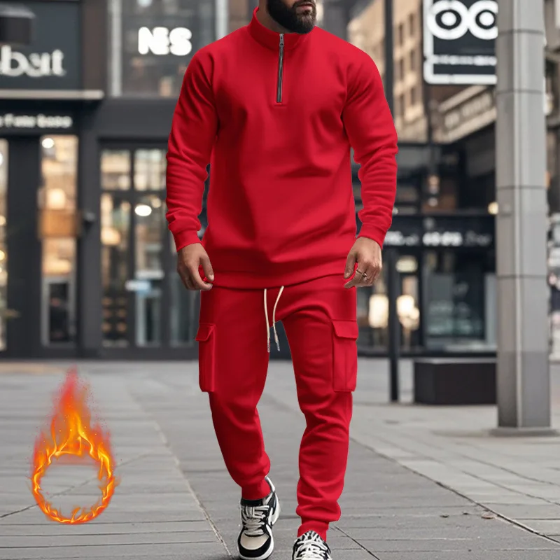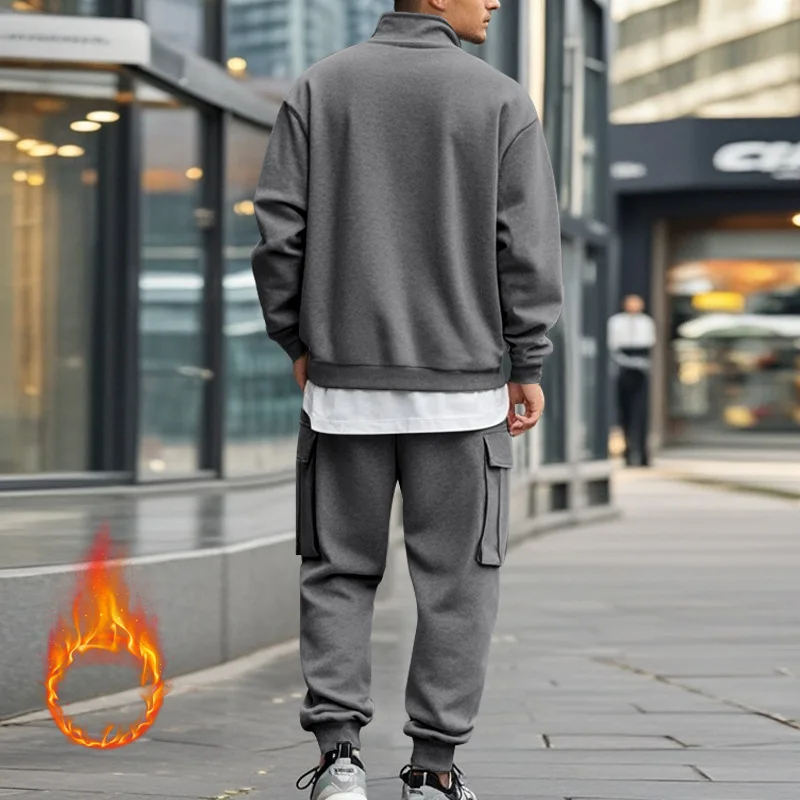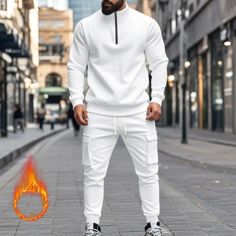 2024 가을, 겨울 남성 캐주얼 벨벳 따뜻한 지퍼 스포츠 바지 세트