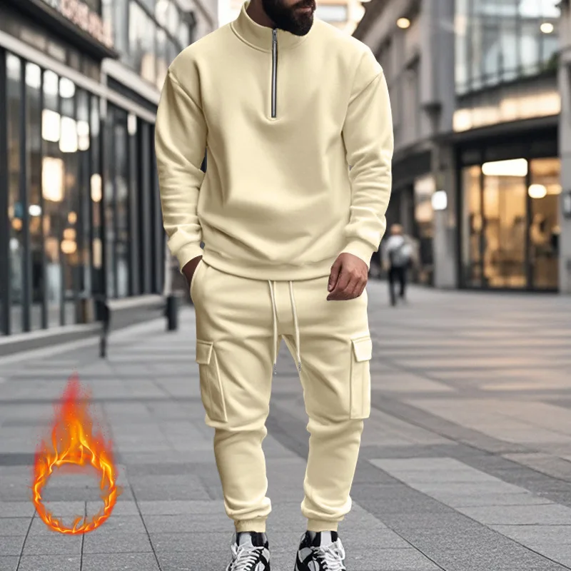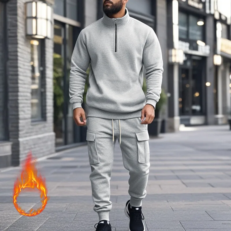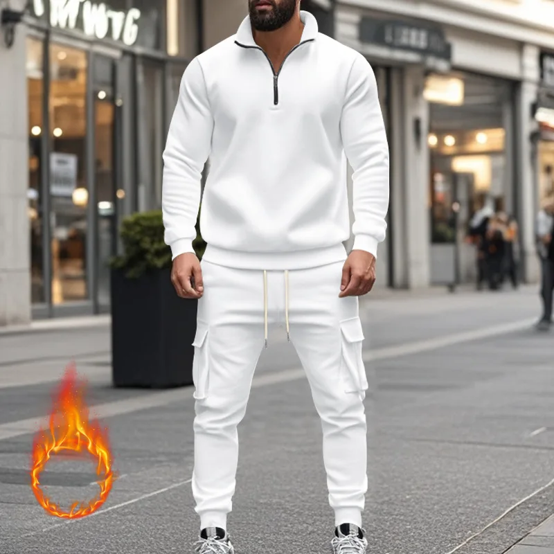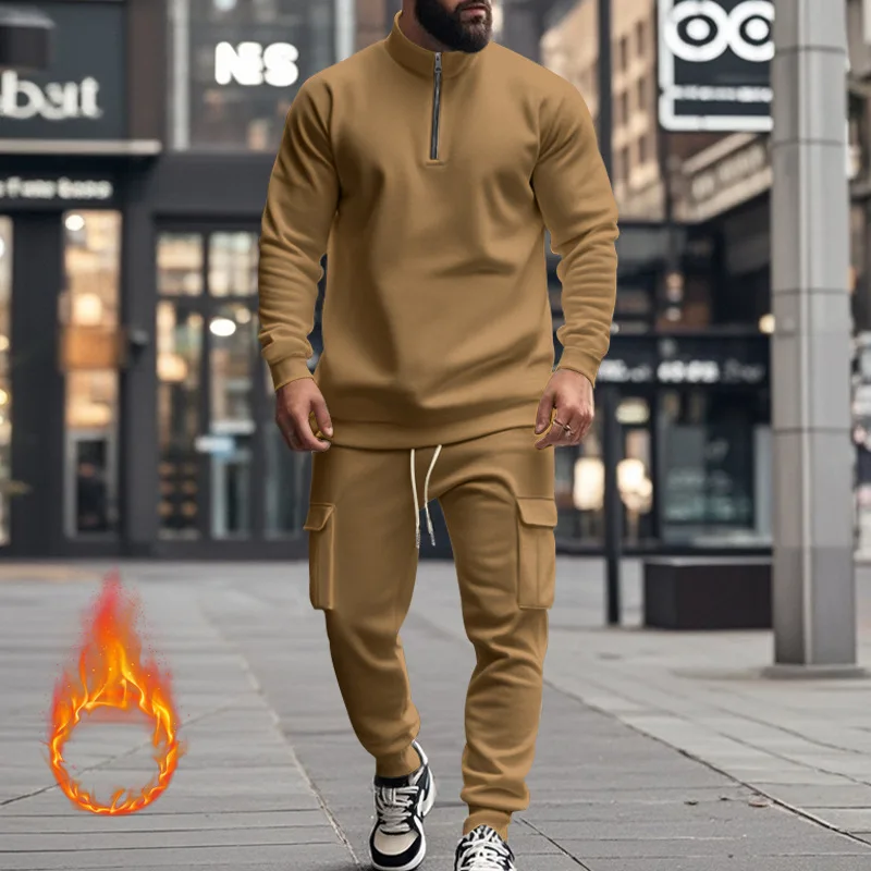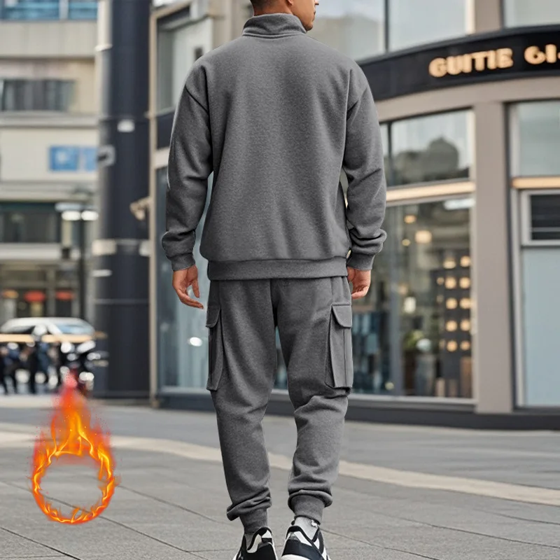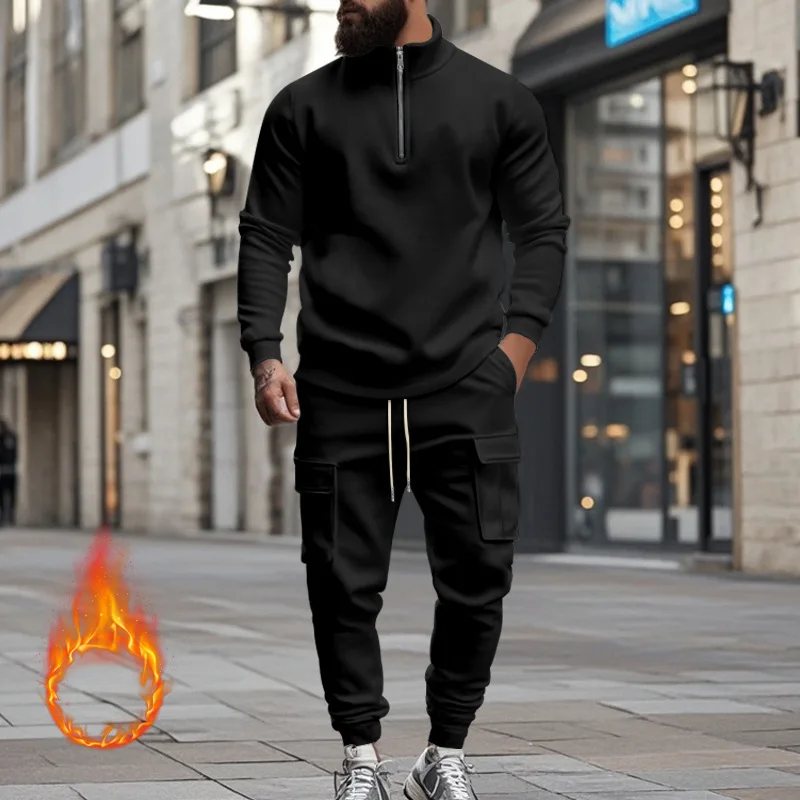 2024 가을, 겨울 남성 캐주얼 벨벳 따뜻한 지퍼 스포츠 바지 세트