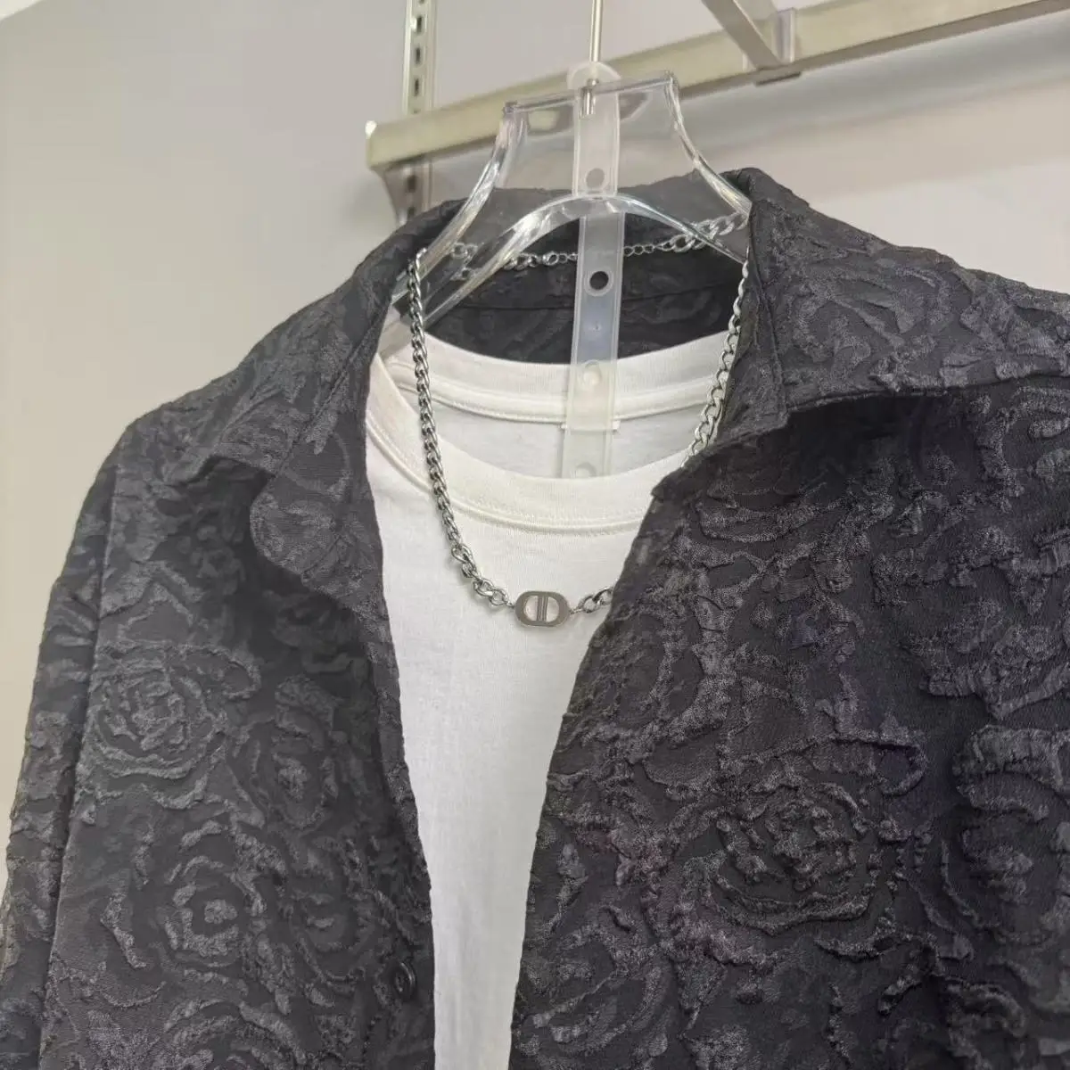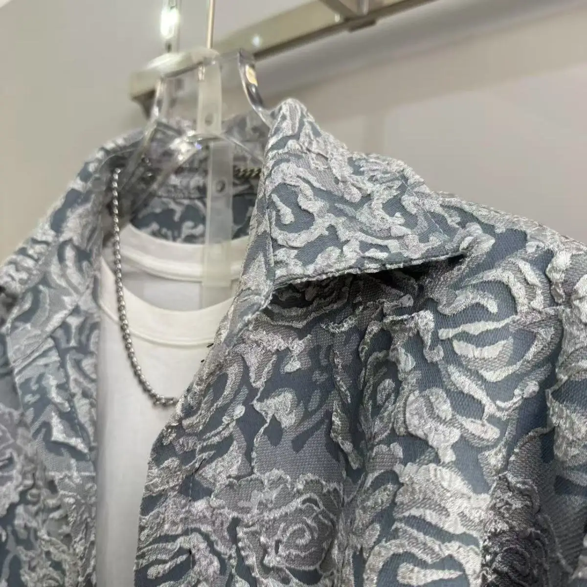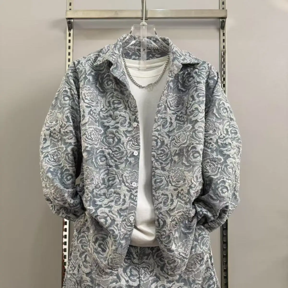 2025 신상 남성 캐주얼 패션 투피스 바지 세트, 스포티한 라펠 자카드 셔츠, 긴팔 봄가을 세트