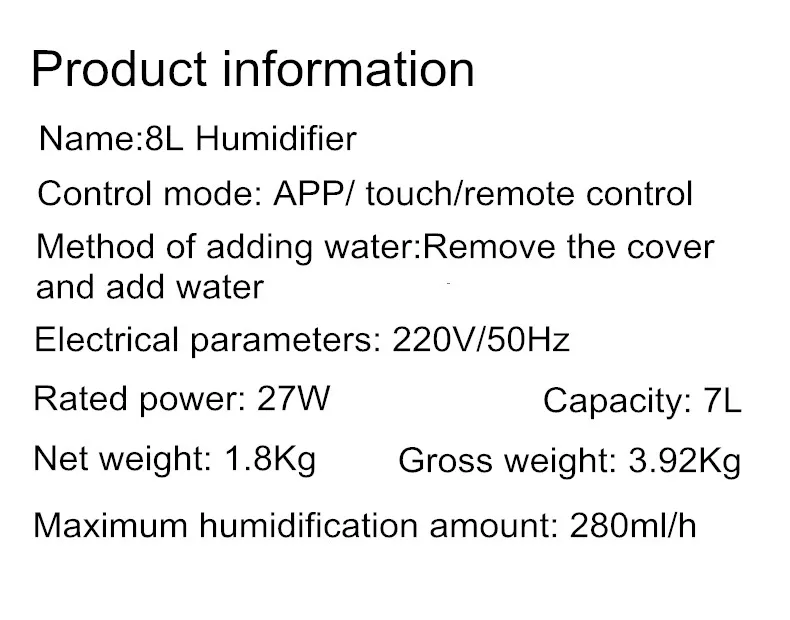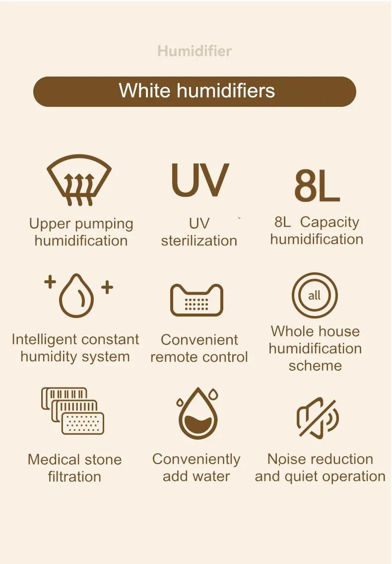 “220V 전기 가습기 8L 용량 바닥형 공기 청정기 안개 제조기 지능형 터치 스크린 조정 가능한 아로마 테라피 안개”의 첫 상품평을 남겨주세요 응답 취소
