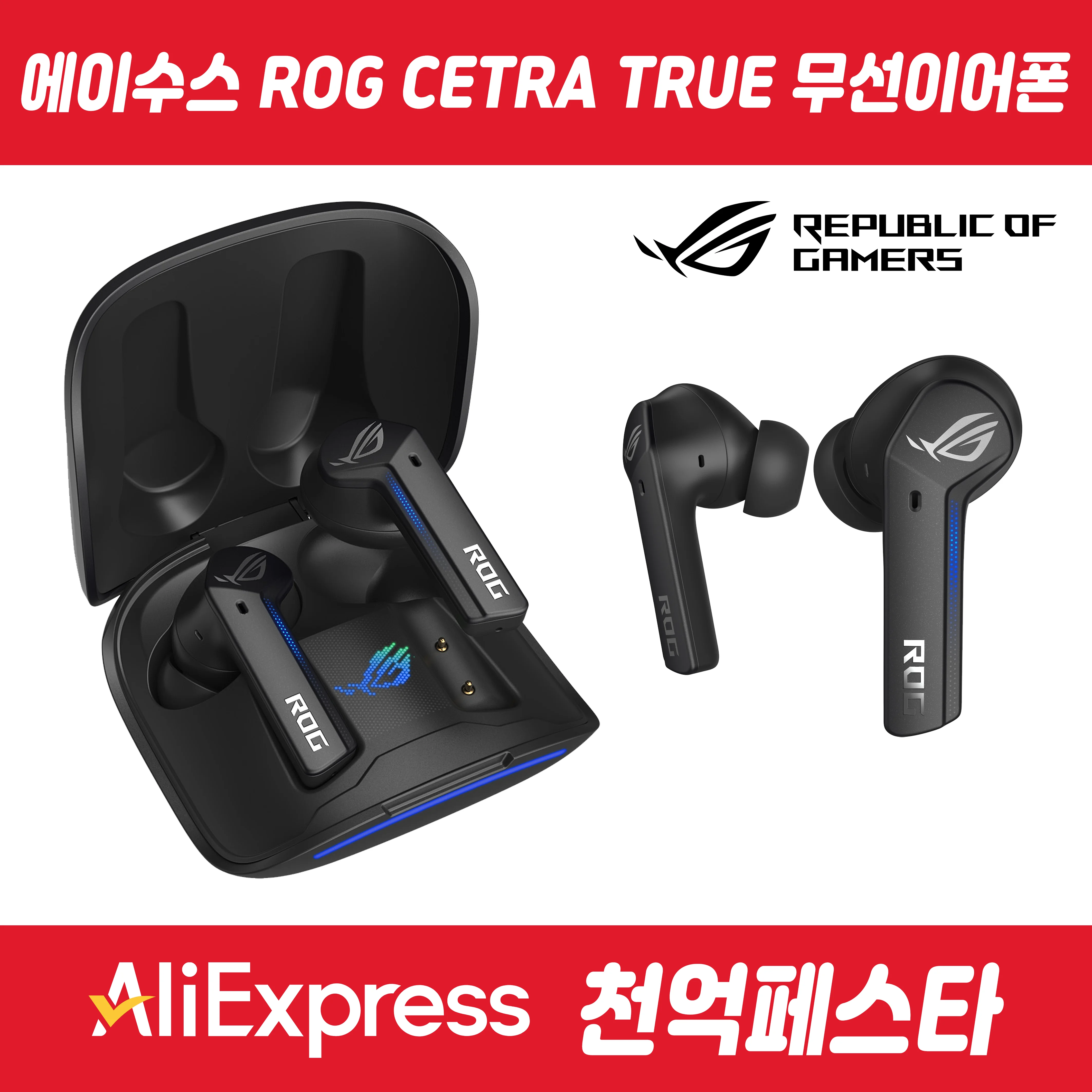 ASUS ROG CETRA TRUE WIRELESS 게이밍 무선 이어폰 블루투스이어폰 블랙