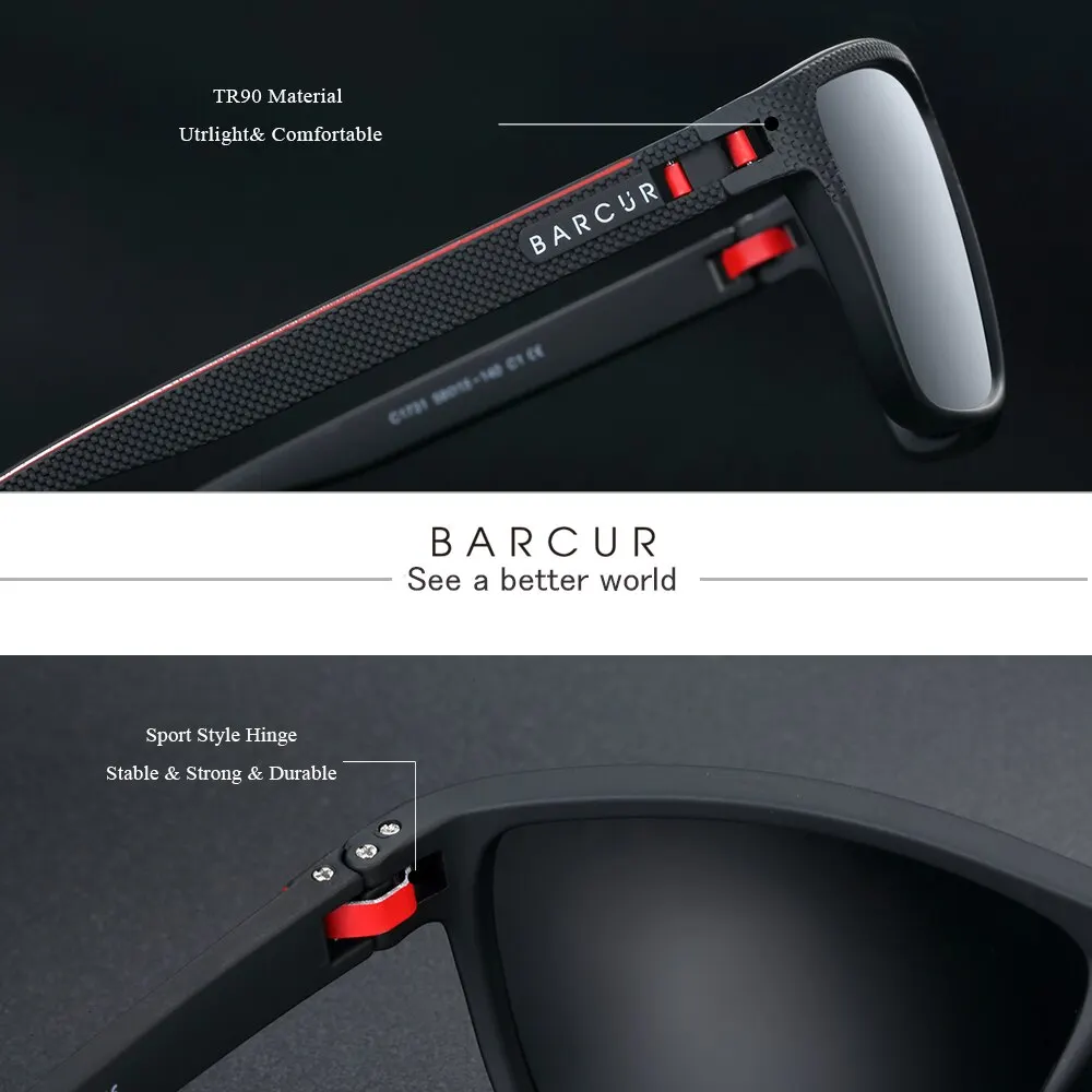 BARCUR 디자인 TR90 선글라스 남성 편광 경량 스포츠 태양 안경 여성 안경 액세서리 Oculos UVAB 보호