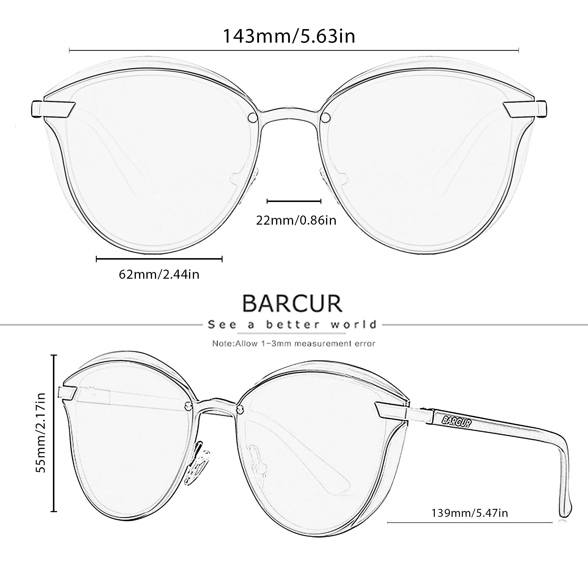 • 편광 렌즈:BARCUR의 편광 선글라스와 차이점을 경험하십시오. 이 렌즈는 눈부심과 눈의 피로를 줄여 더 편안하고 선명한 시력을 제공합니다.