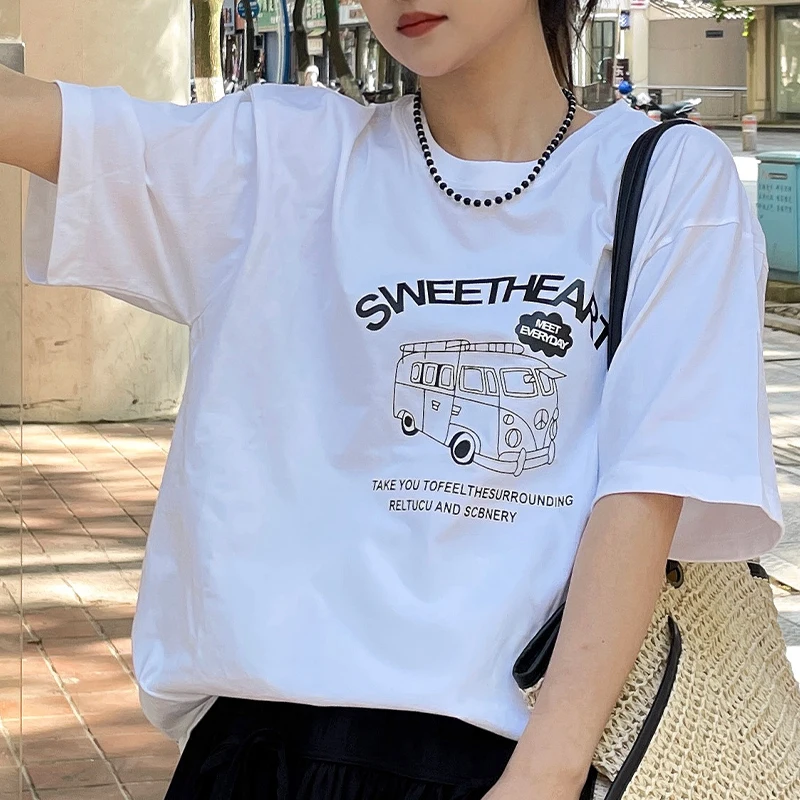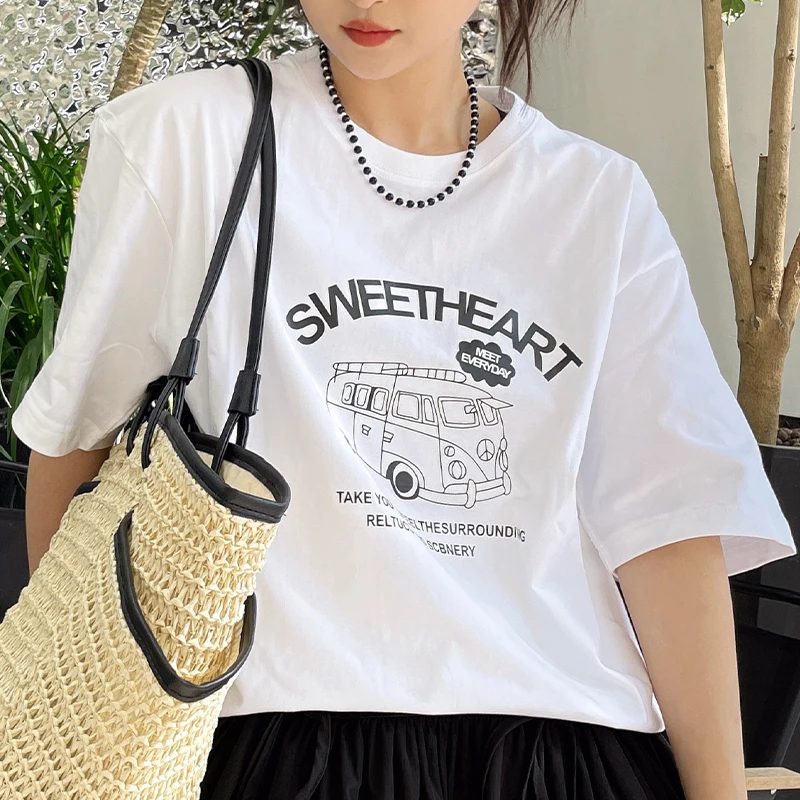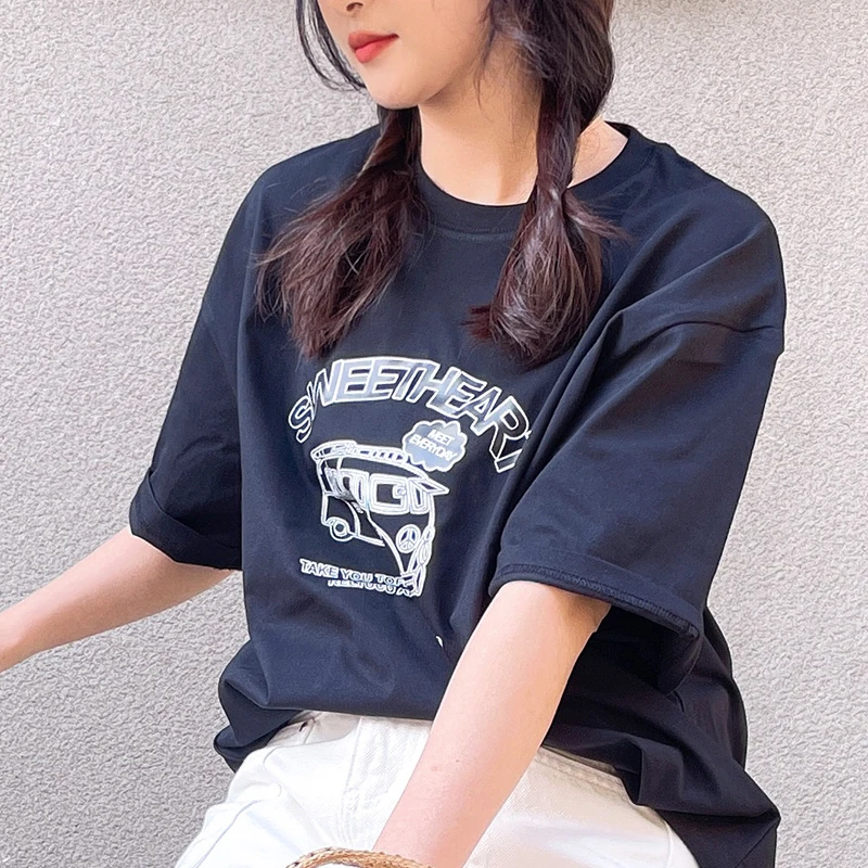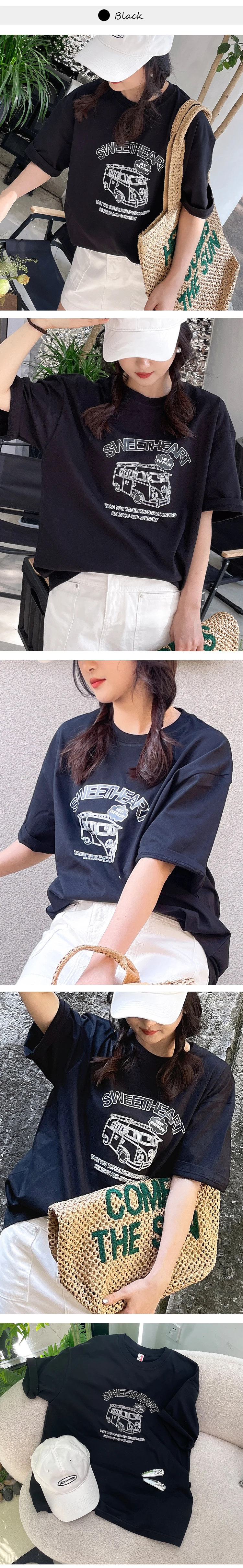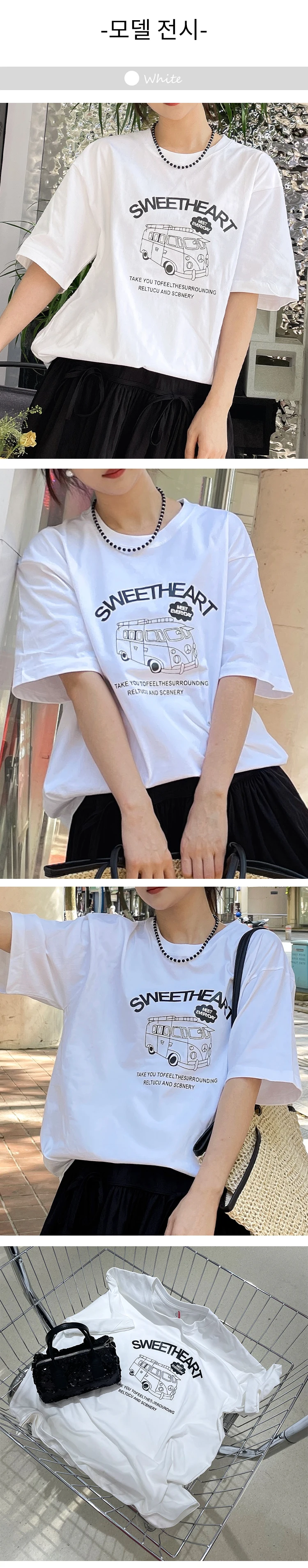 GLACIER 여성 반팔 티셔츠 루즈핏 100%면 빈티지 패턴