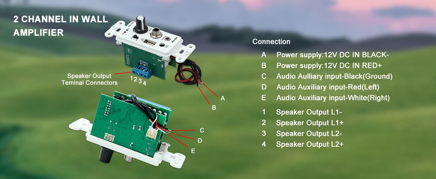 미디어 재생을 위한 USB 플래시 메모리 리더 기능이 있으며 장치 충전 포트로도 사용할 수 있습니다.AUX 3.5mm 오디오 입력 잭을 사용하면 외부 장치의 오디오를 연결하고 스트리밍할 수 있으며, 월 플레이트 수신기는 샘플 소스 오디오 제어와 함께 편리한 마이크 페이징 기능을 추가합니다.