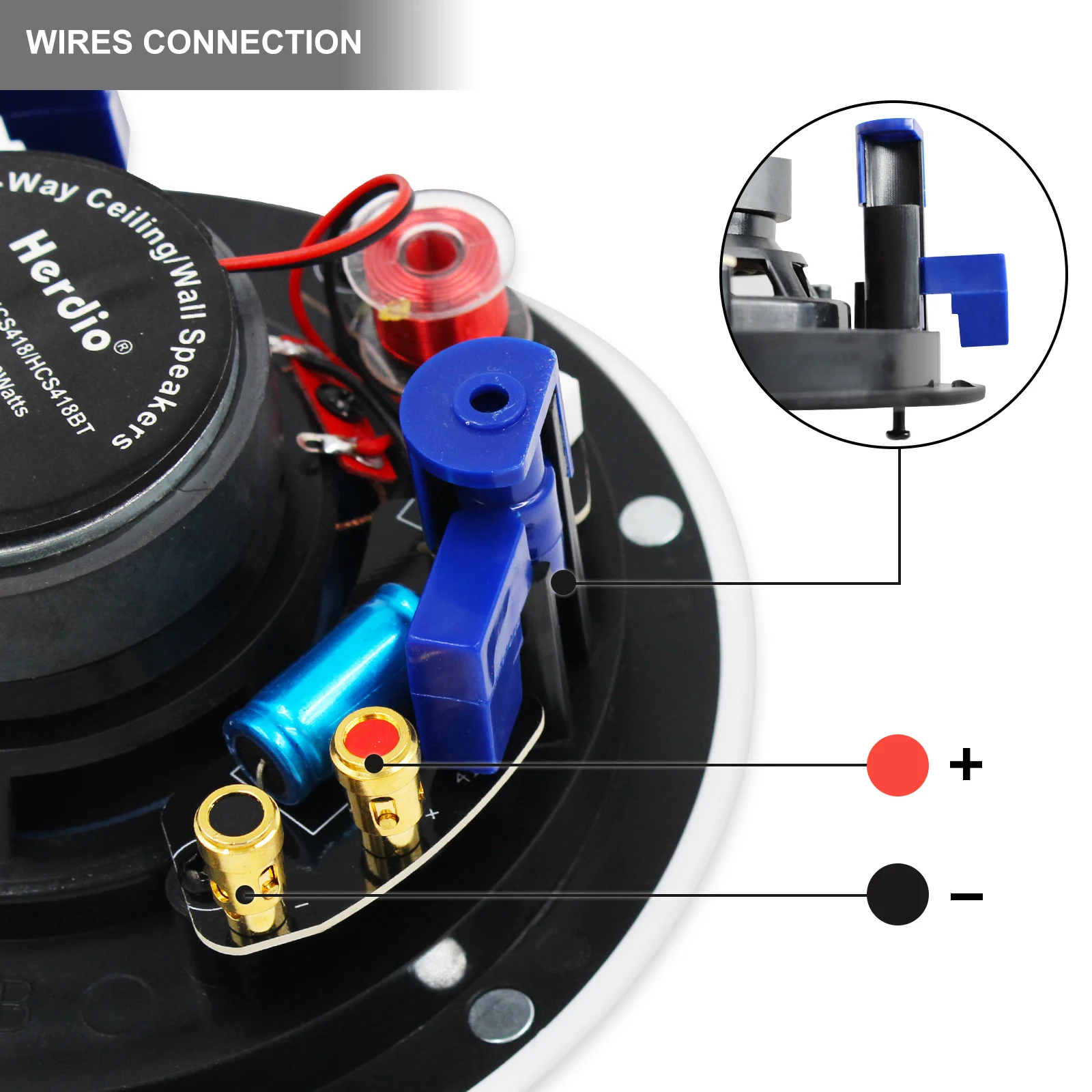 Herdio 4인치 Bluetooth 천장 스피커(쌍) 벽면 증폭기 수신기에 160W 매립형 실내 홈 및 지붕이 있는 야외 베란다에 적합