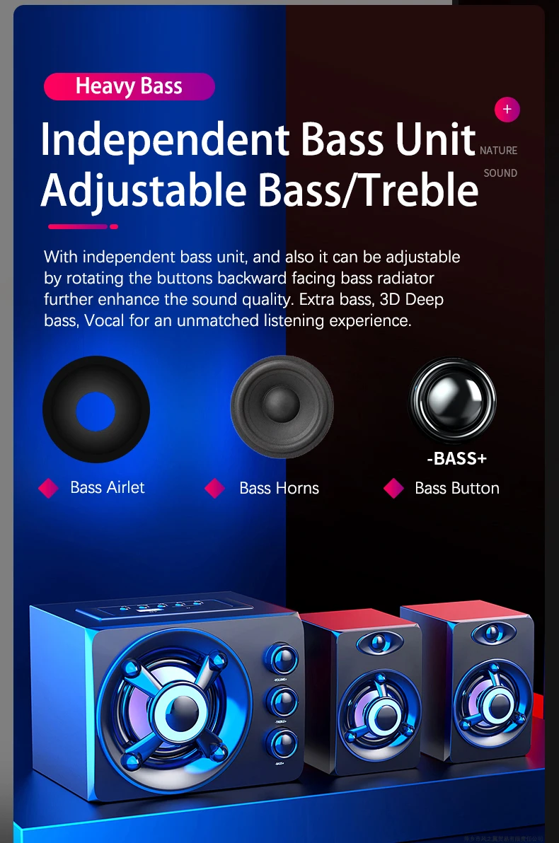 3D surround sound effect:Stereo 2.1 stereo, the sound is as real as the scene