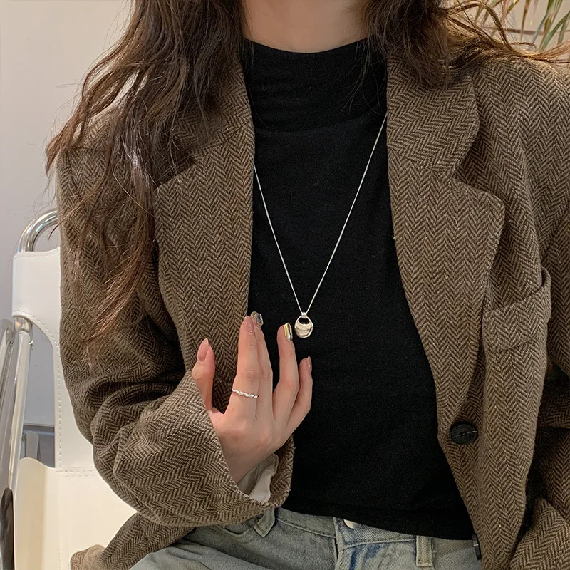 Korean Sle Long Pendant Nelace Women’s Autumn Winter Luxury Vintage Saddle Bag Pendant Sweater Chain Accory Silver