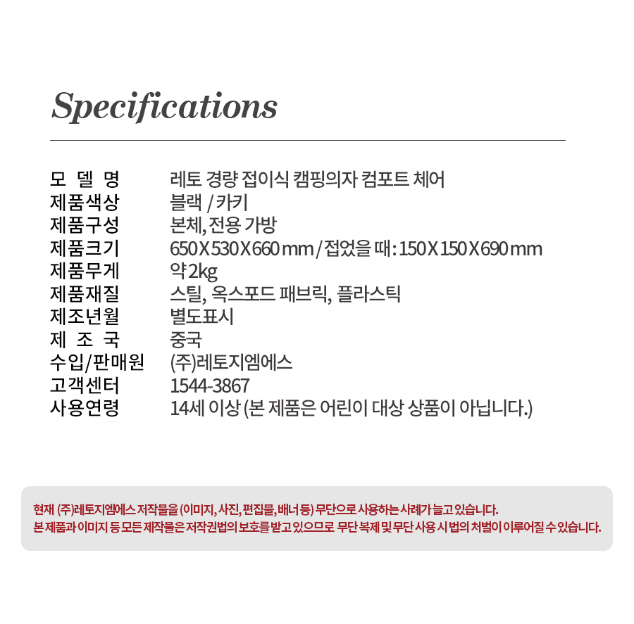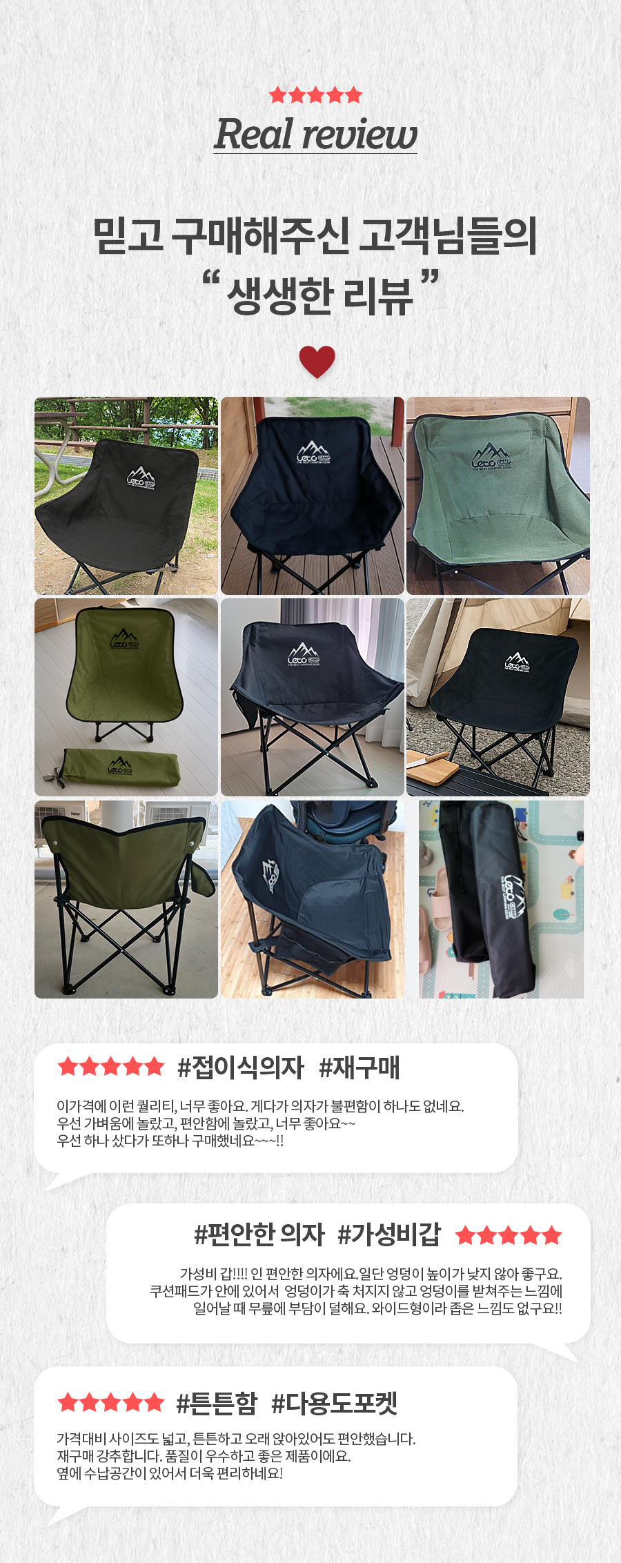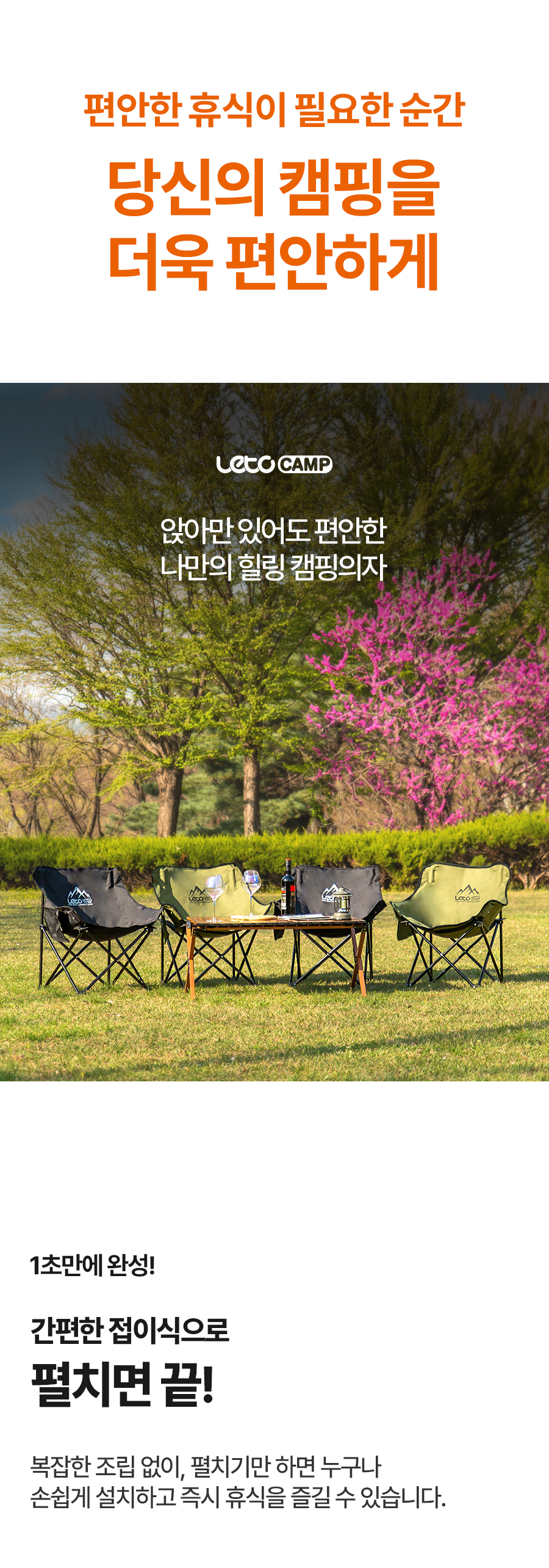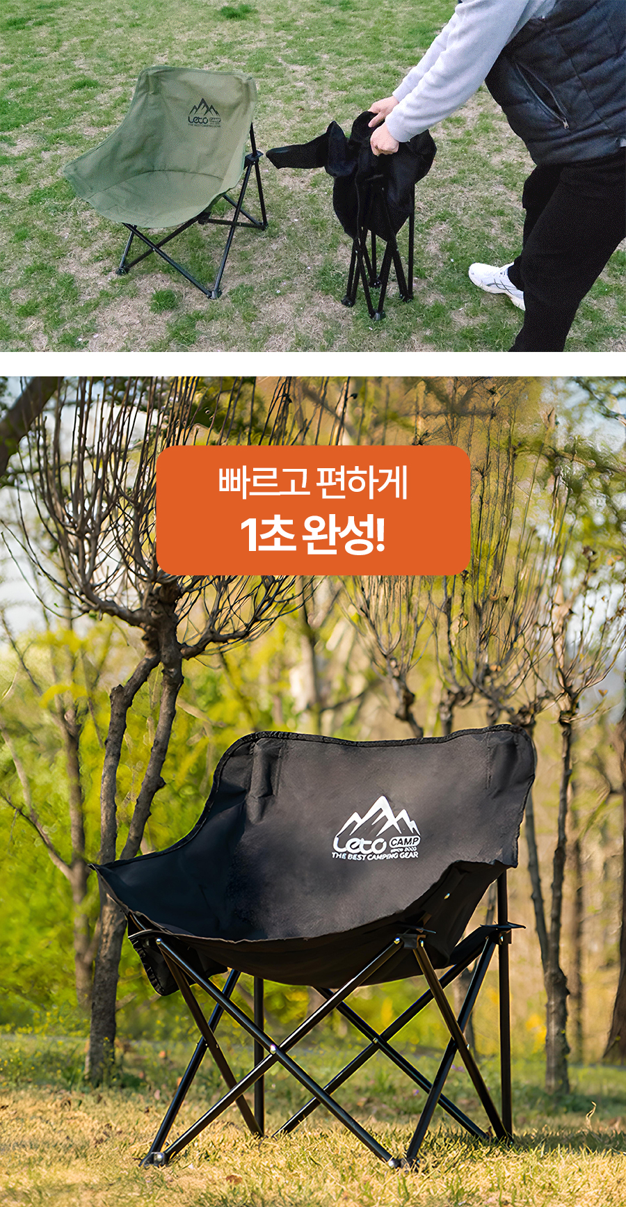 “(LETO) 레토 경량 접이식 캠핑의자 2개 세트 컴포트 체어 LCP-CL04 1+1”의 첫 상품평을 남겨주세요 응답 취소
