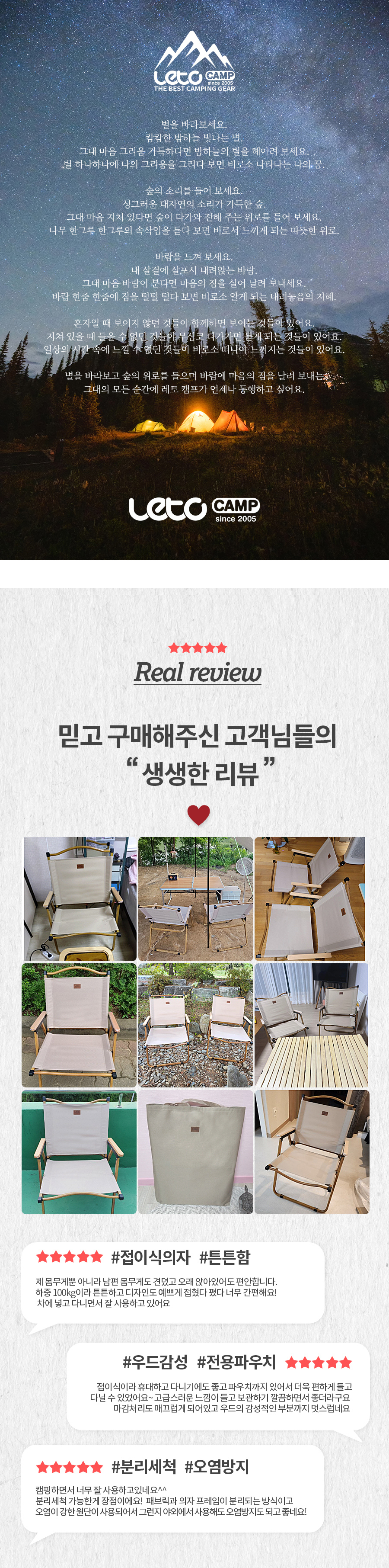 “(LETO) 레토 대형 우드 감성 경량 캠핑의자 폴딩 로우 릴렉스 체어 LCP-C03”의 첫 상품평을 남겨주세요 응답 취소