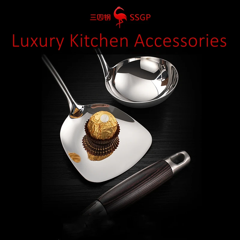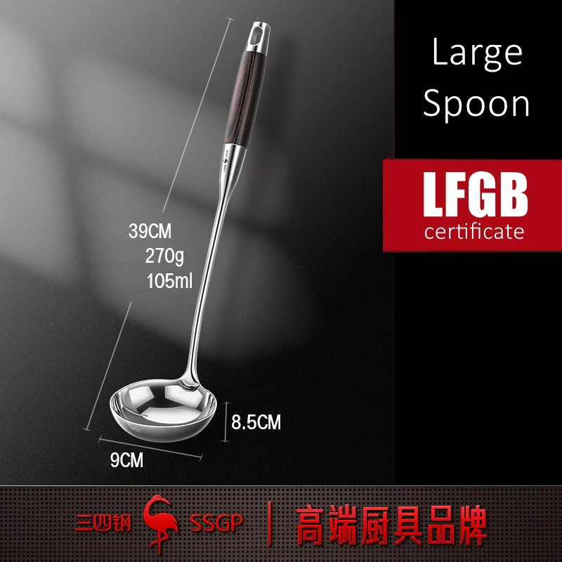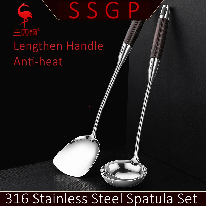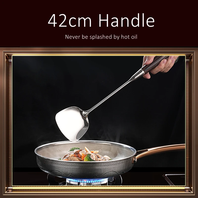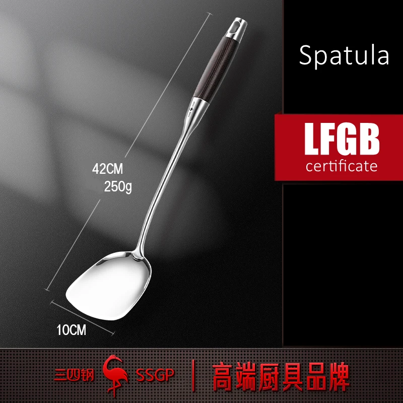 LFGB 인증서 316 스테인리스 스틸 뒤집개 세트, 길이 42cm, 단단한 로그 우드 손잡이, 요리 삽 스푼,
