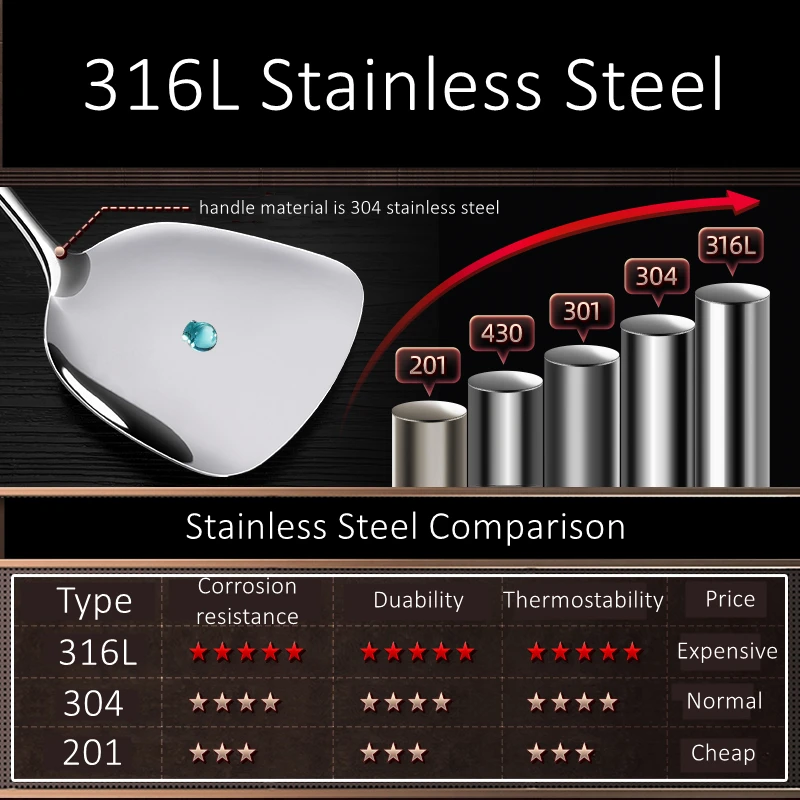 - Steel Type: 316L stainless steel