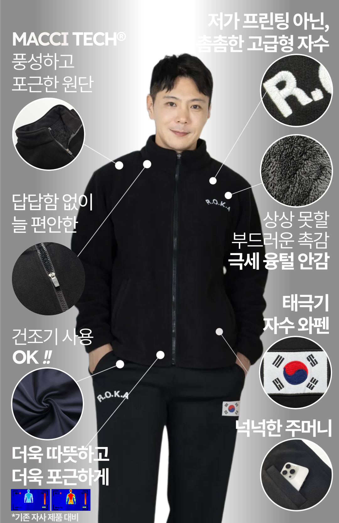 macci(마찌) 히트포뮬러 ROKA 자수 코리아 아미 보아털 기모 로카 후리스 집업 (정품)