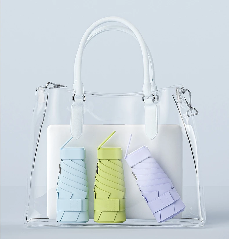미니 태양 우산 작은 주머니 비 우산 비닐 접는 UV 자외선 보호 태양 그늘 주머니 파라솔 캡슐