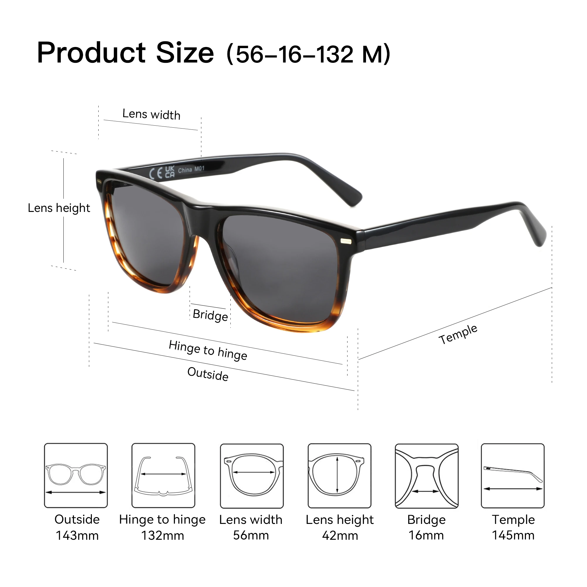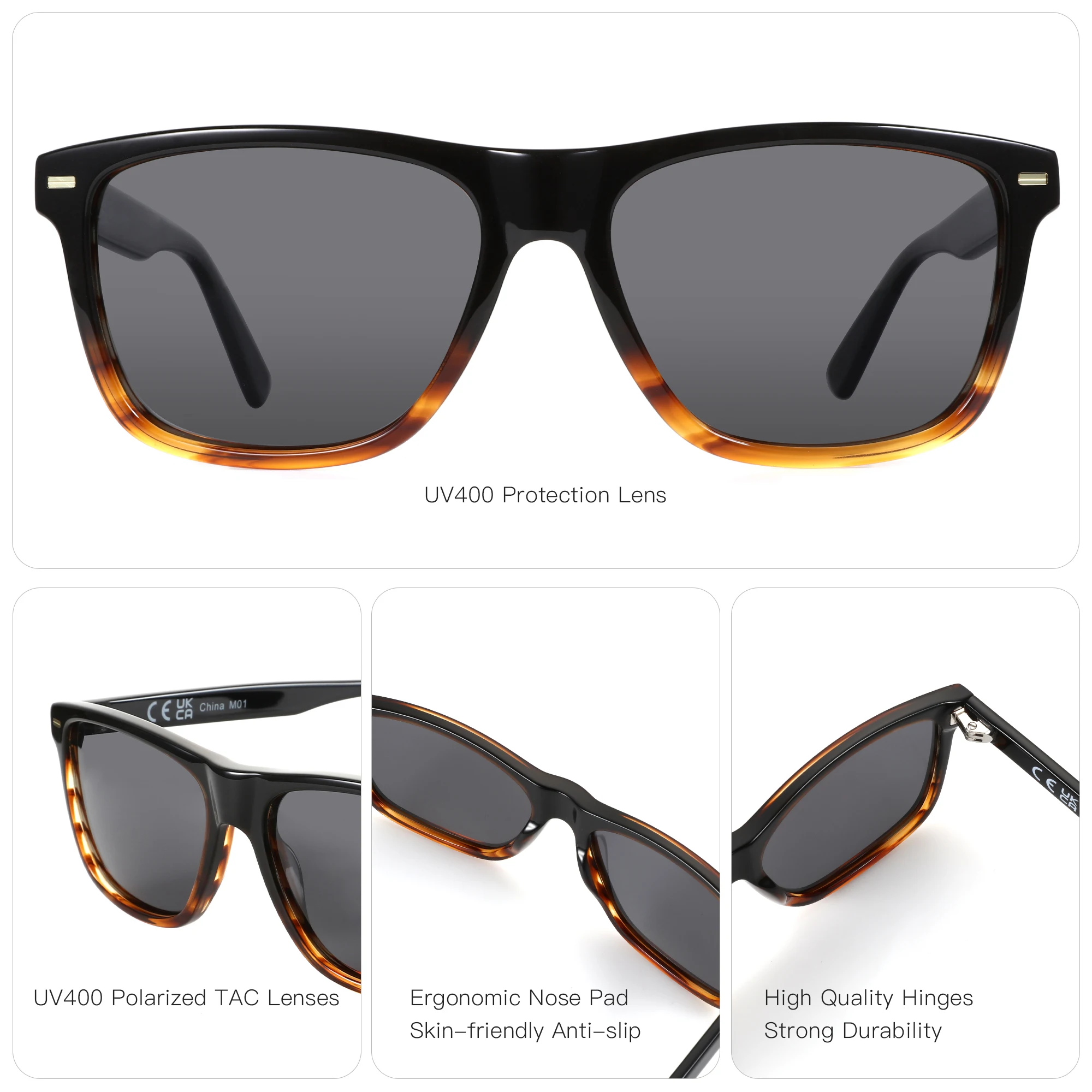 ZENOTTIC 패션 스퀘어 편광 선글라스 UV400 보호 아세테이트 선글라스 여성용 남성용 클래식 디자인 그늘