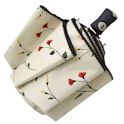 작은 꽃 자동 우산 방풍 차양 비닐 UV 보호 3 접는 햇볕이 잘 드는 비오는 이중 용도 파라솔 비옷