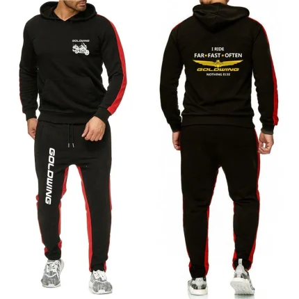 2024 Men Goldwing GL1800 Motocycles Tracksuit 까마귀 스웨터 및 스웨트 팬츠 2 피스 세트 러닝 봄 조깅 스포츠웨어 슈트
