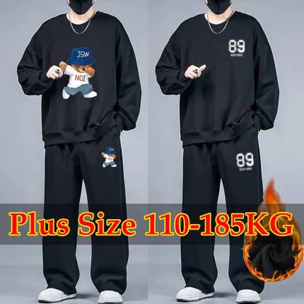 2피스 세트 남성용 스웨트셔츠 바지 플러스 사이즈 플리스 안감 탑스 스포츠 조깅 바지 패션 캐주얼 풀오버 후디 스웨트팬츠